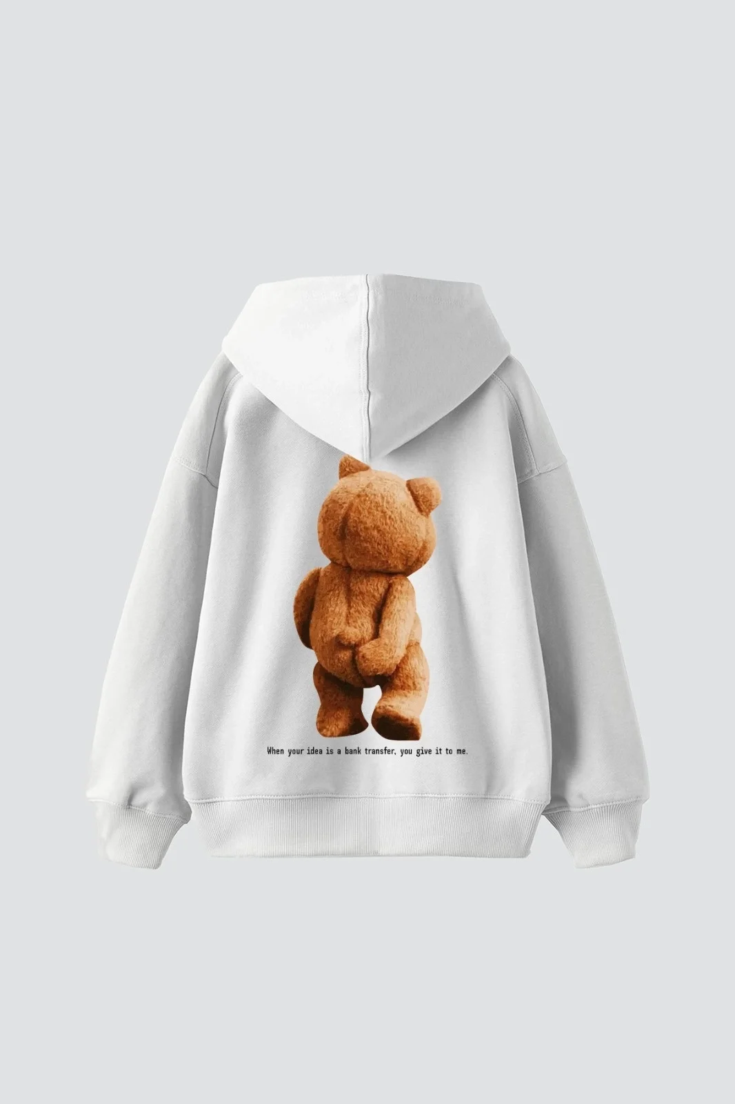 BEAR SIRT BASKILI OVERSİZE UNİSEX BEYAZ HOODİE