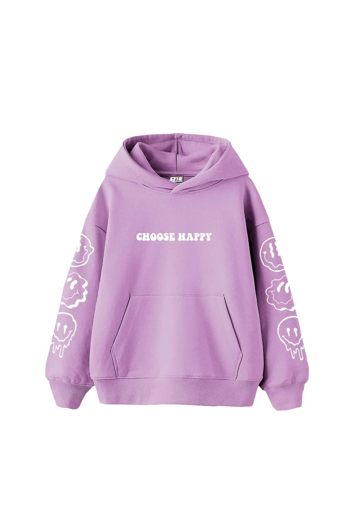 Sokak stiline ışıltılı bir dokunuş: Choose Happy Baskılı Mor Hoodie, oversize kesimi ve göz alıcı detaylarıyla tarzını cesurca yansıtmak isteyenler için tasarlandı.