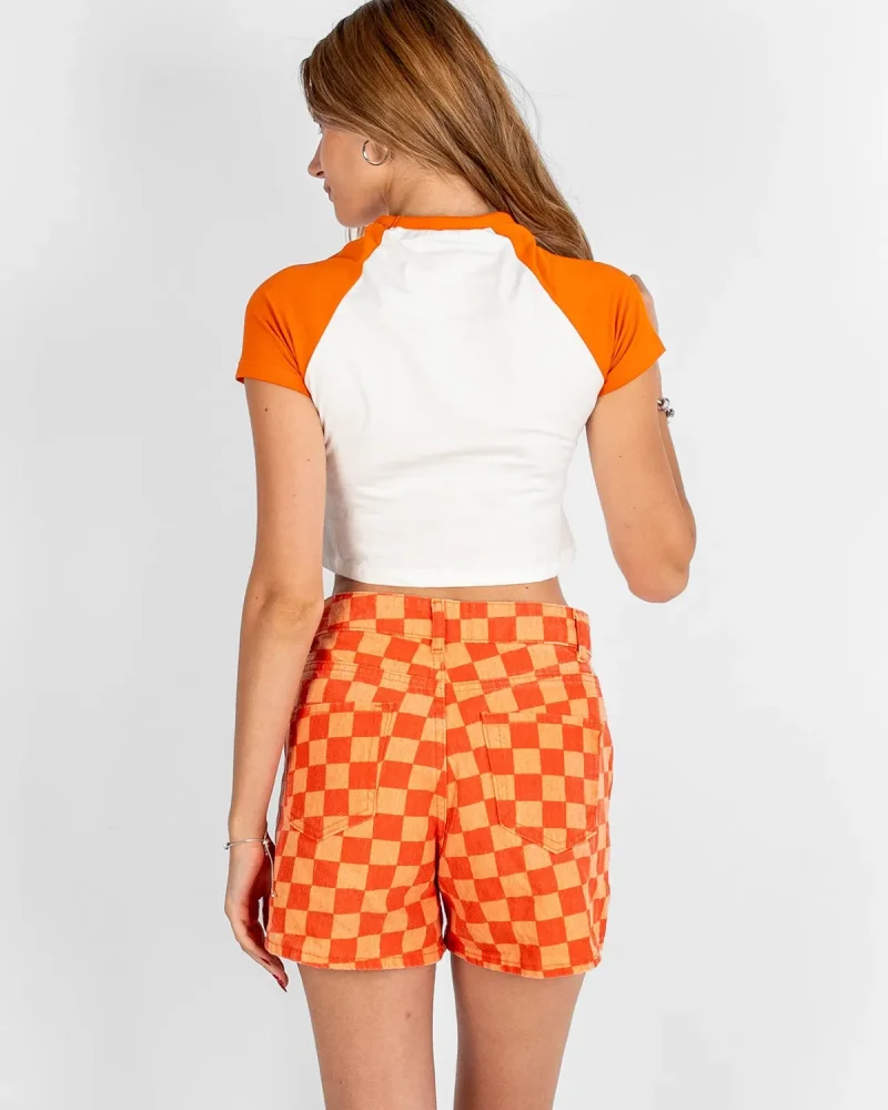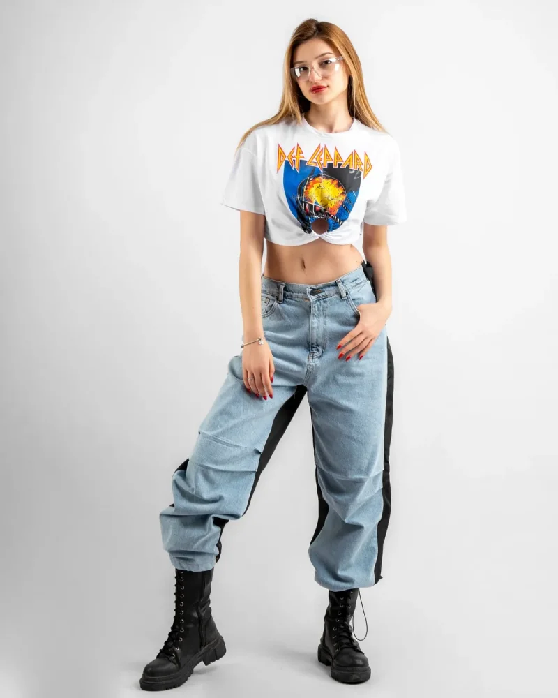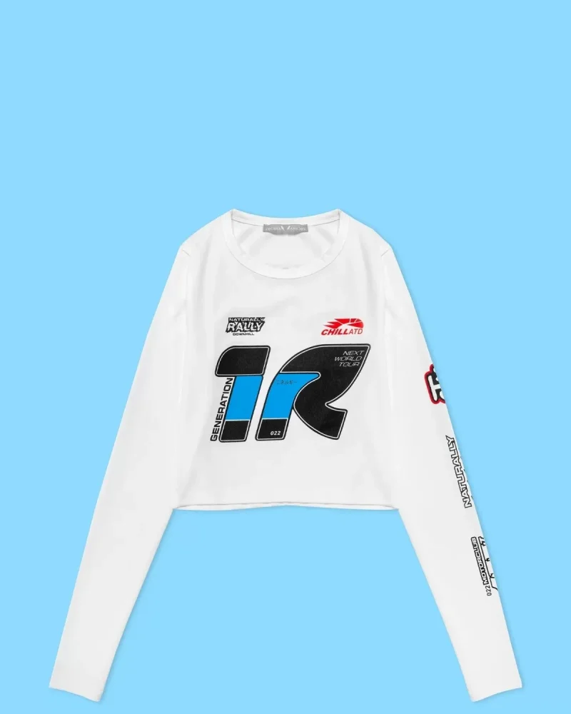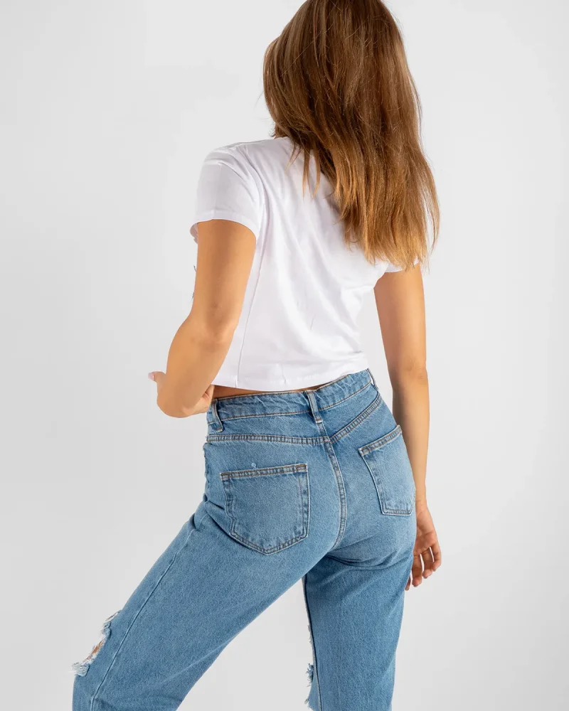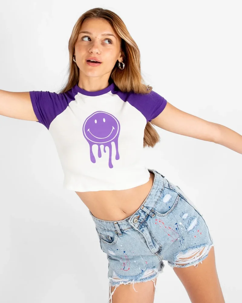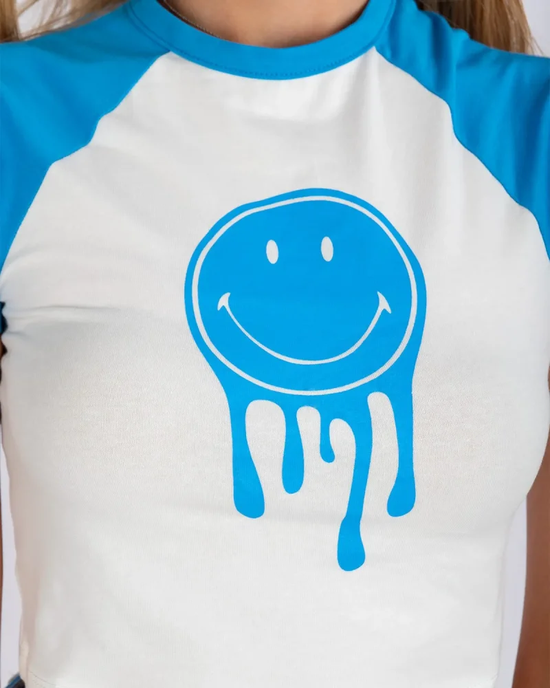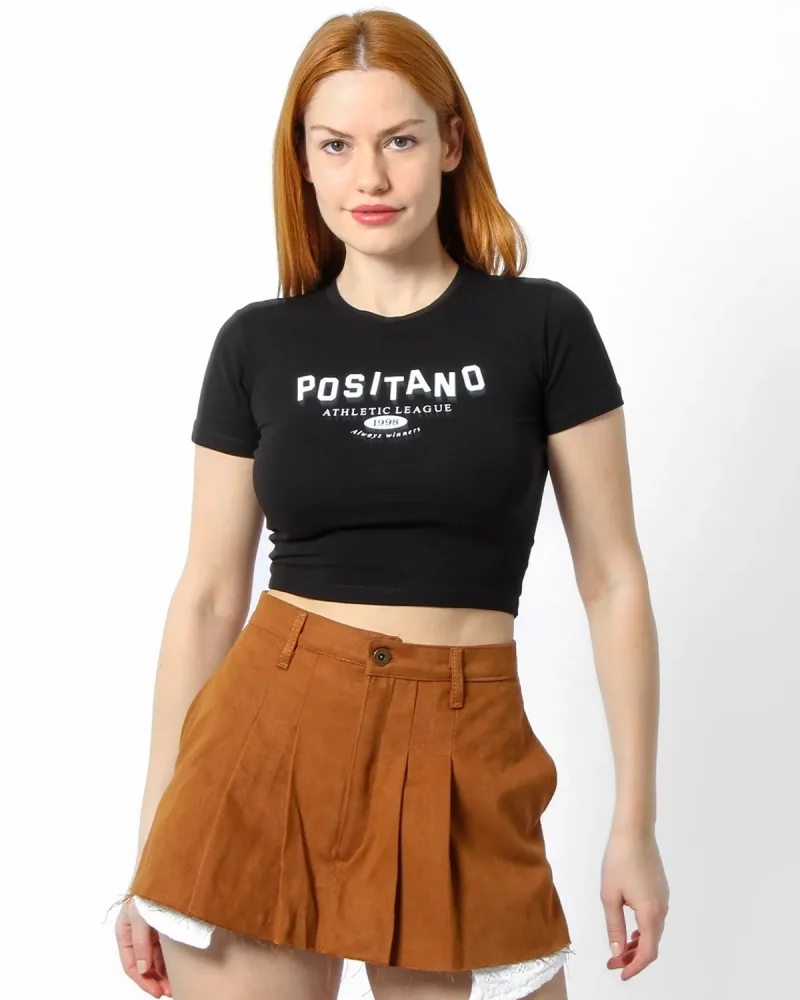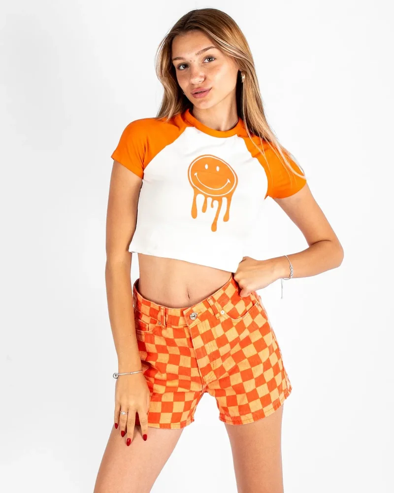 1998 Baskılı Kısa Kollu Beyaz Crop