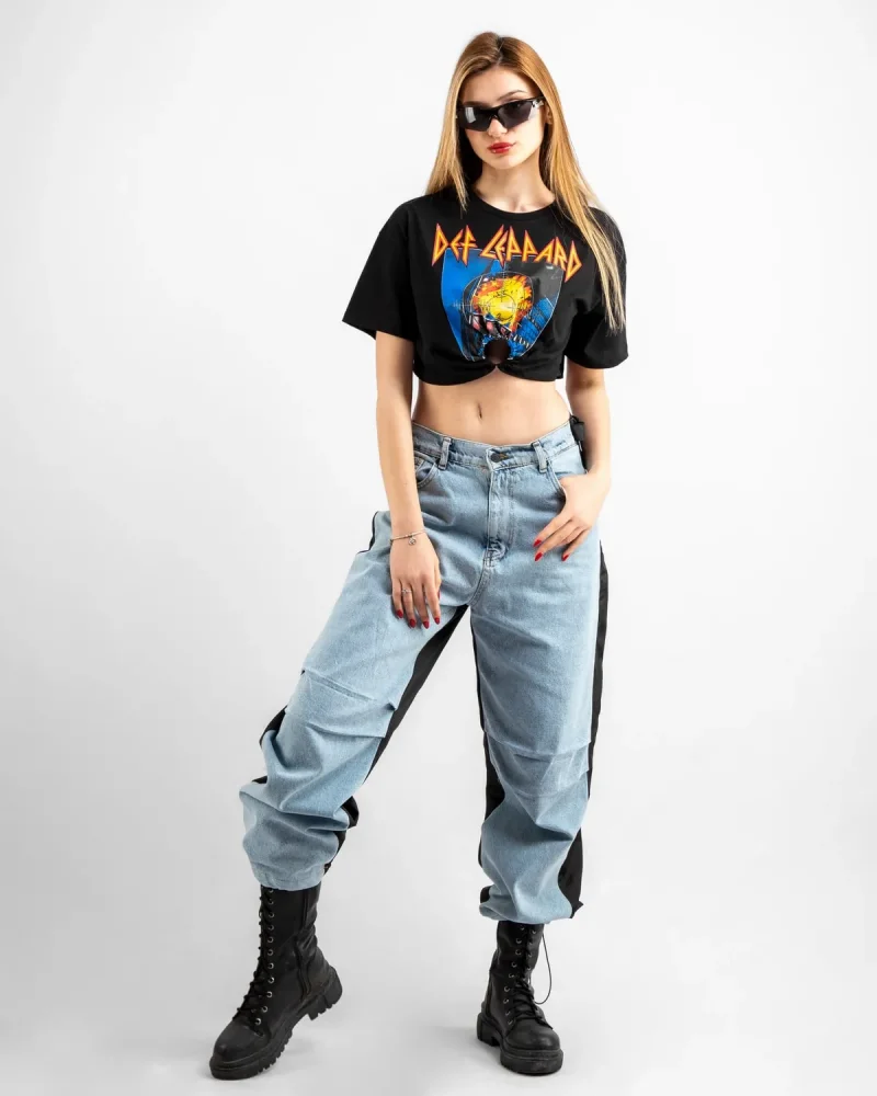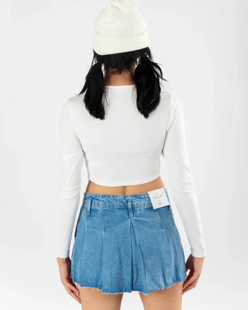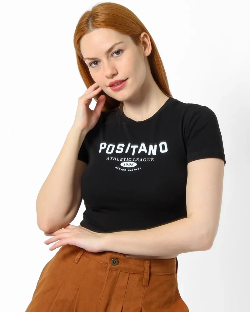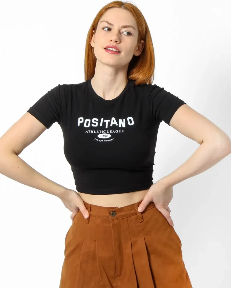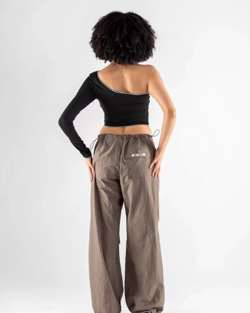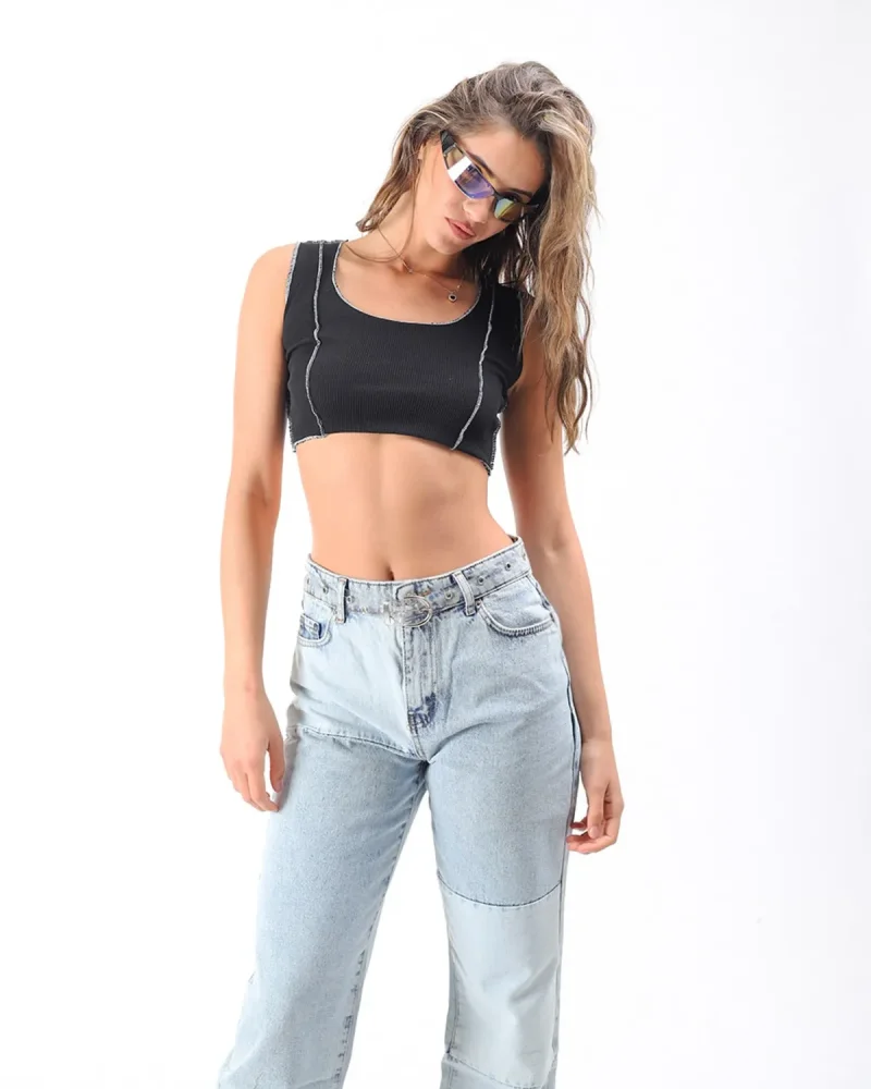 Tek Kol Detay Ters Dikiş Siyah Crop