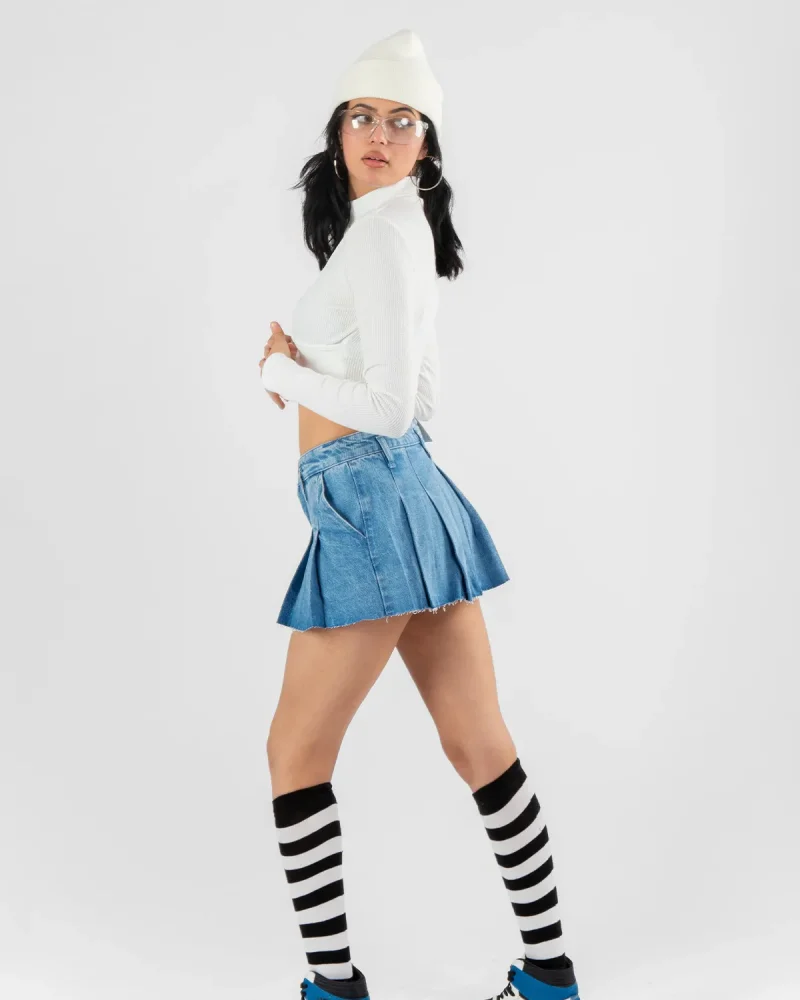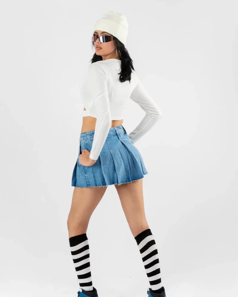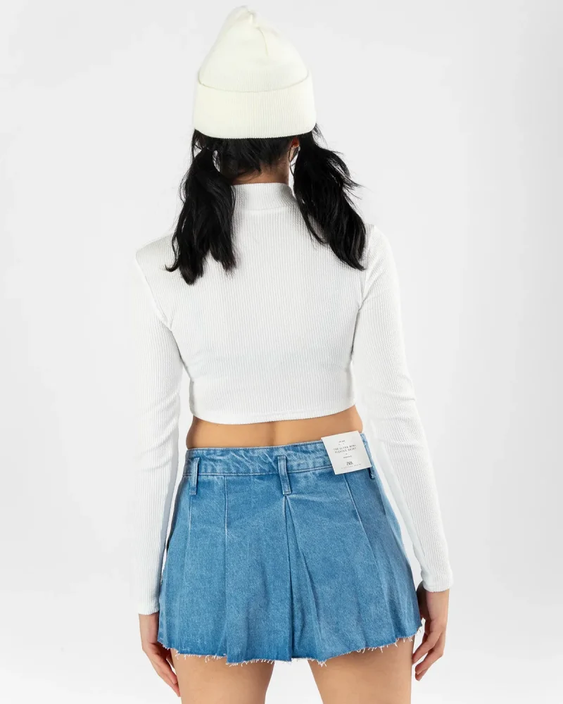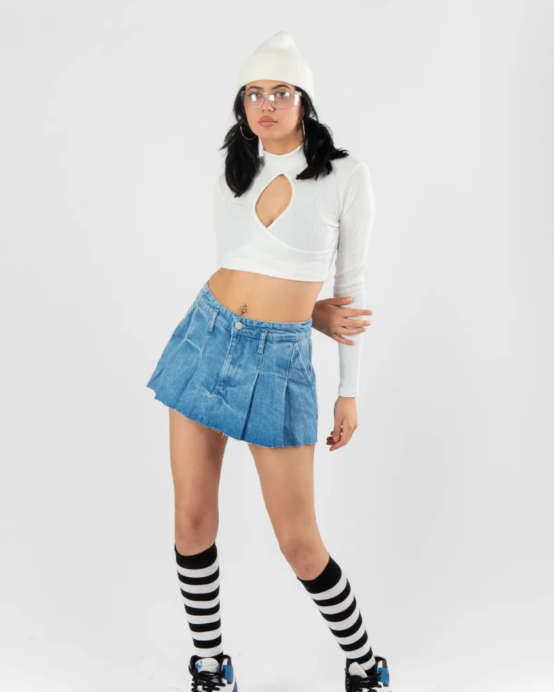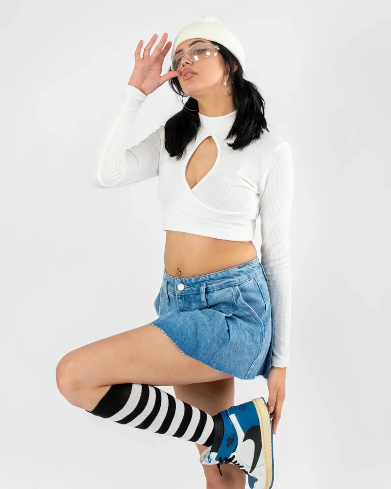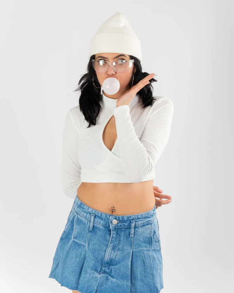 Göğüs Dekolteli Dik Yaka Kadın Beyaz Crop