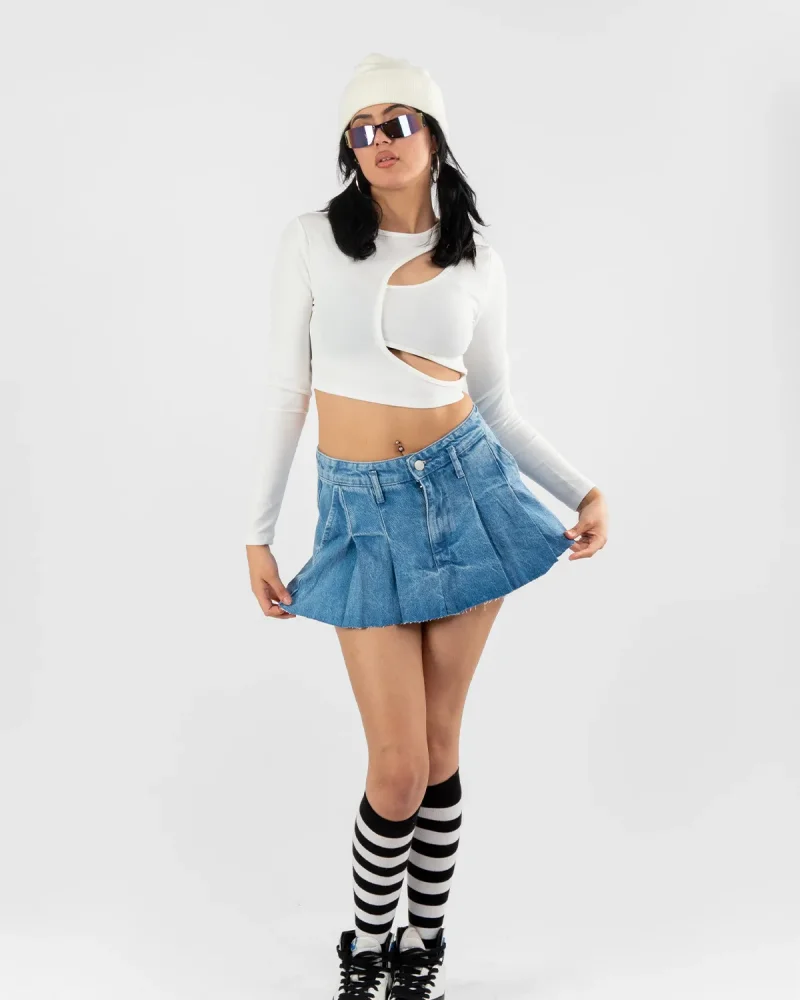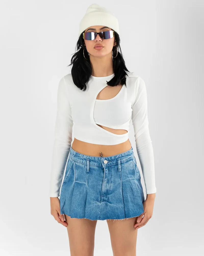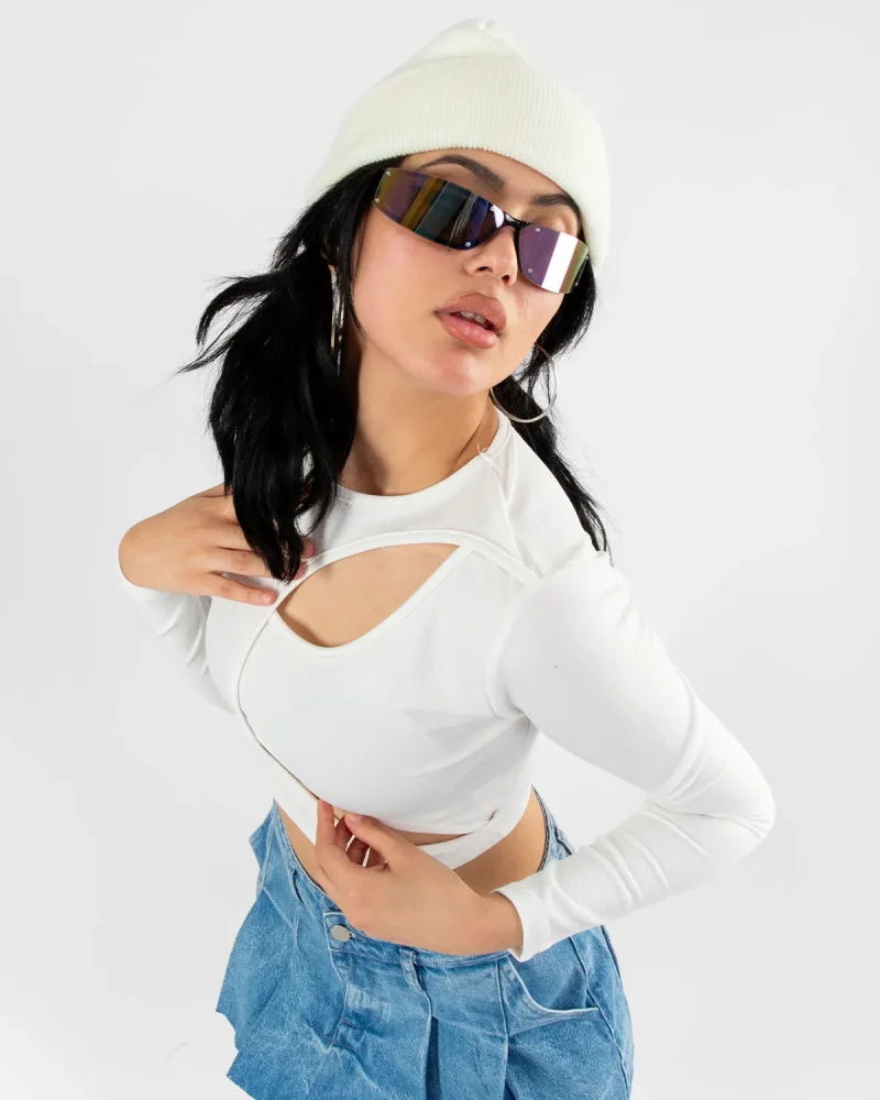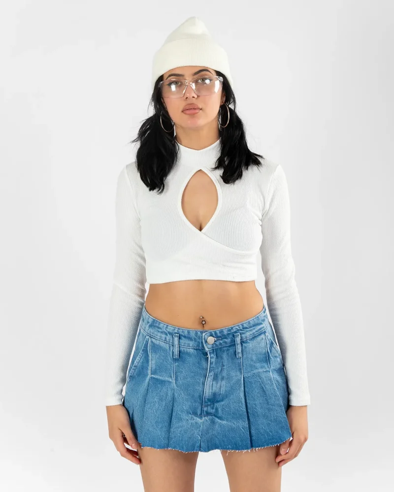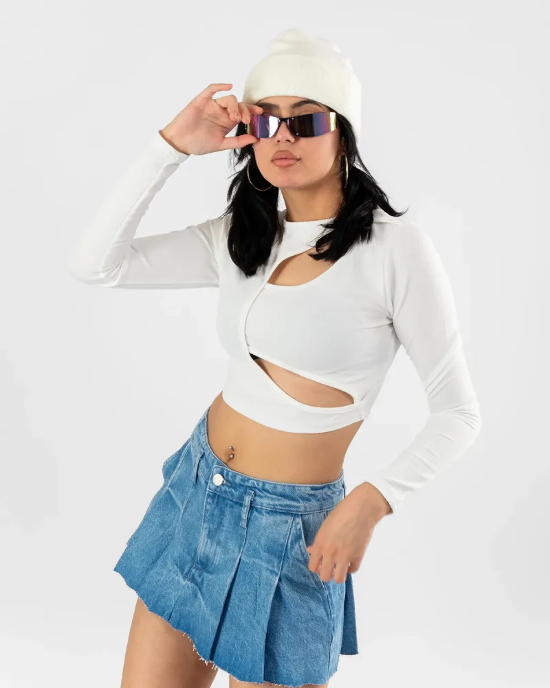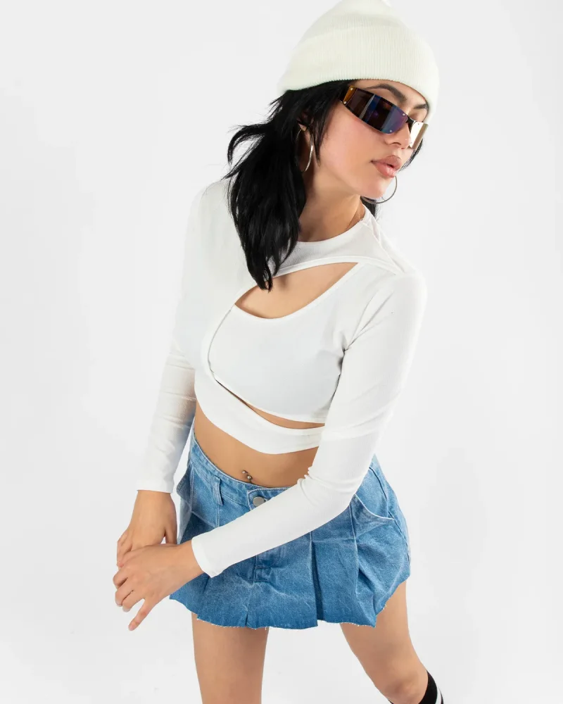 Göğüs Dekolteli Çift Pencereli Kadın Beyaz Crop