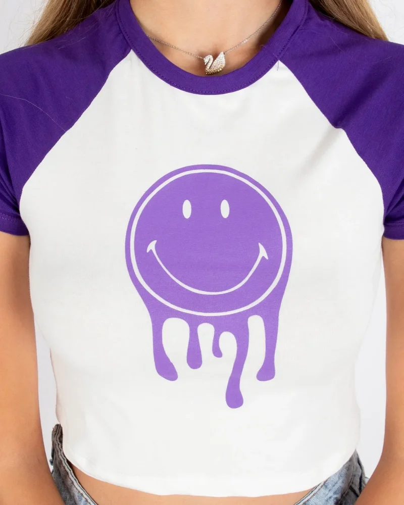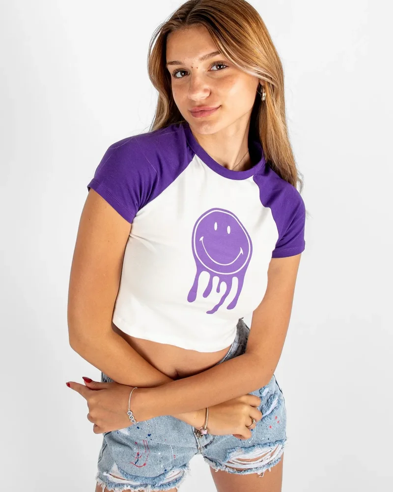 Liquid Smile Kemer Boy Kadın Mor Oversize Tshirt
