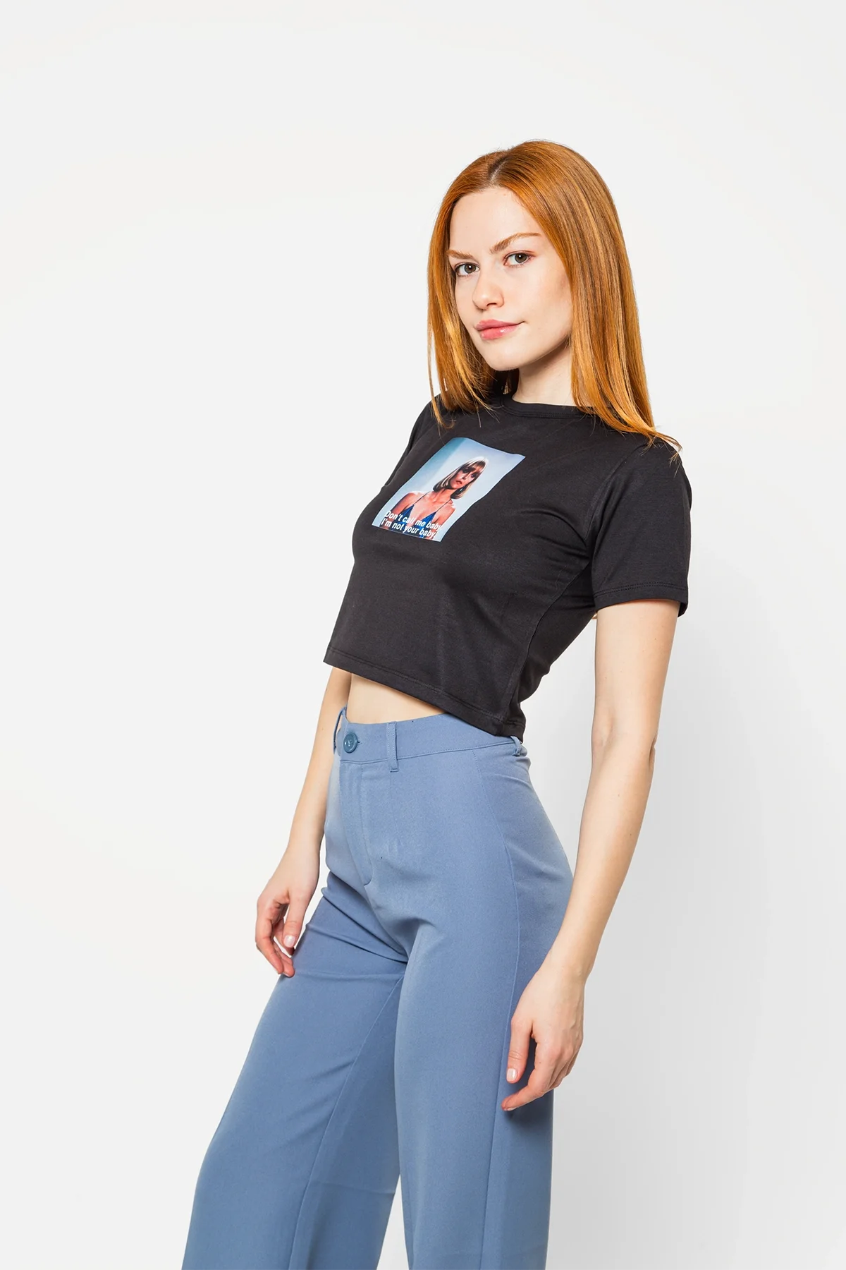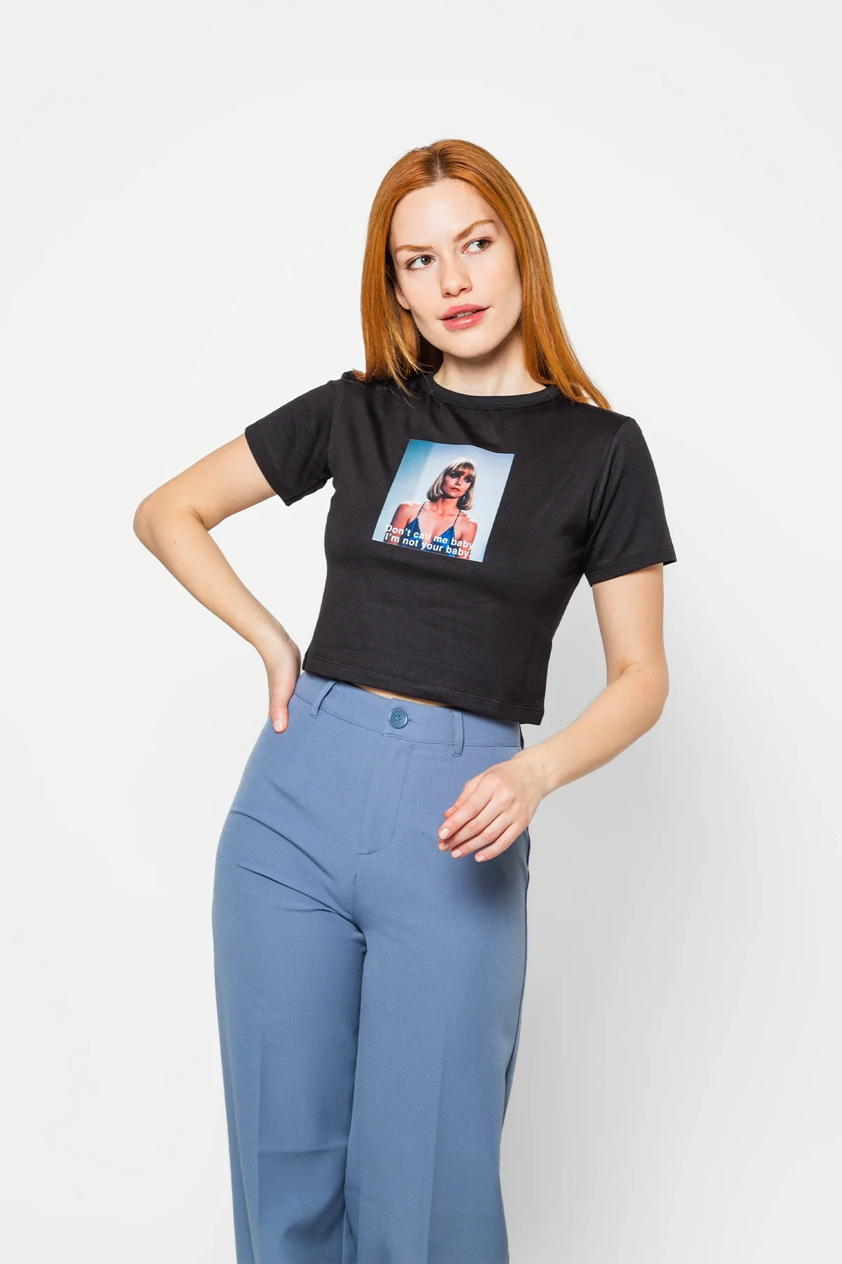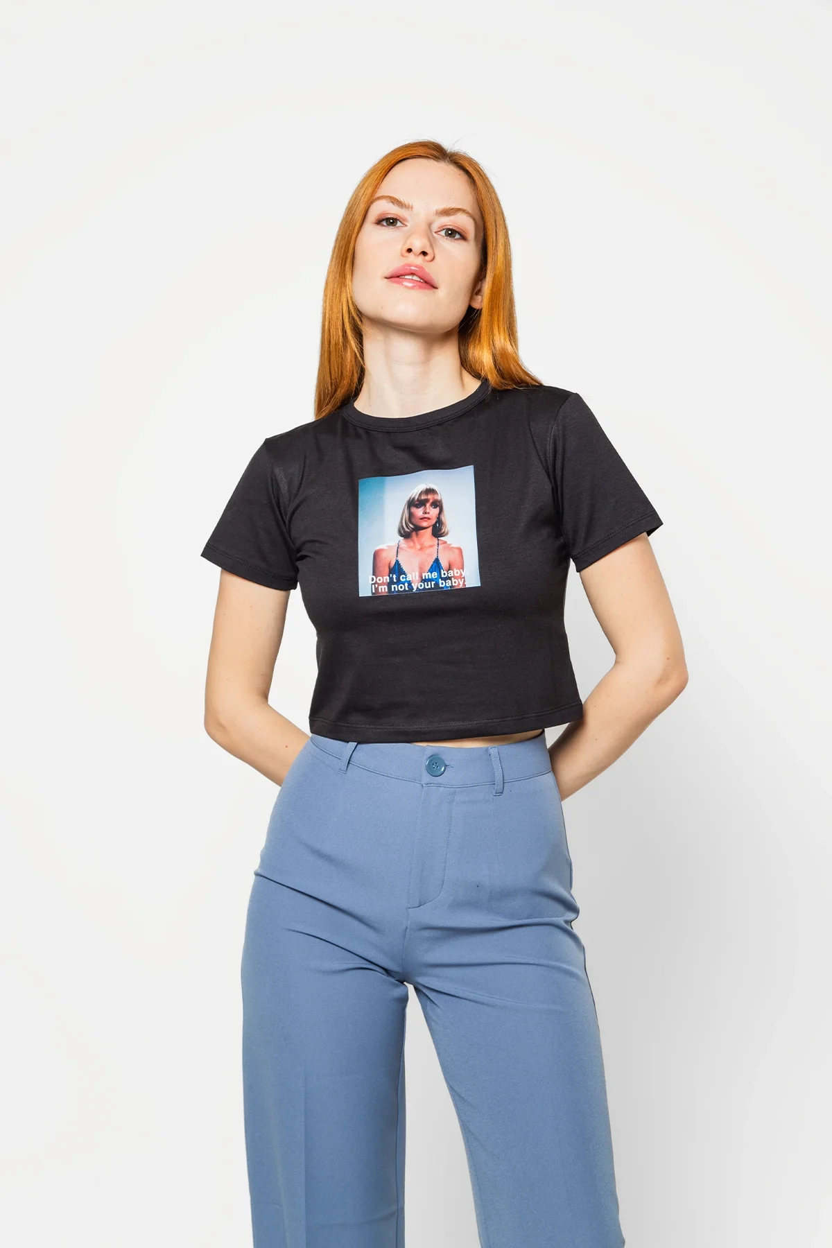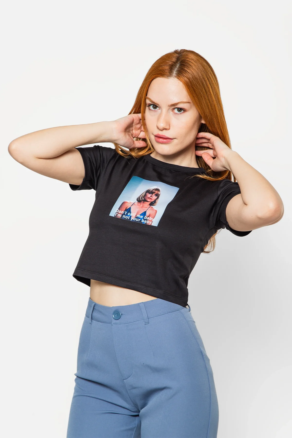DON'T CALL ME BABY BASKILI SİYAH CROP TOP