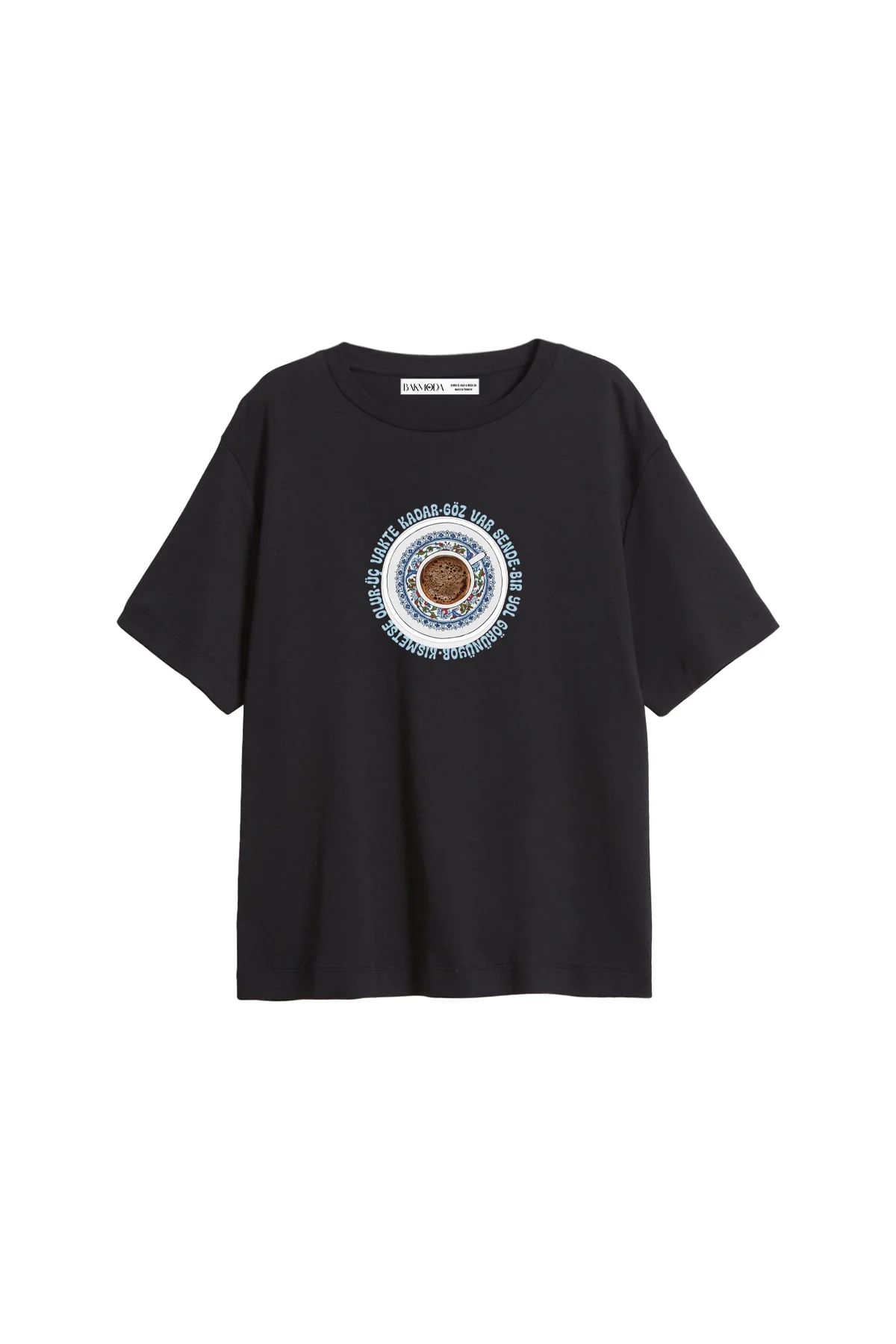 GÖZ VAR SENDE BASKILI RELAXED FİT SİYAH KADIN TSHİRT
