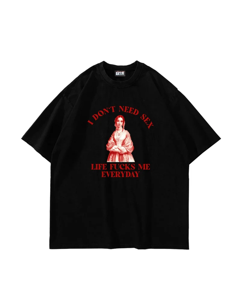 I Don't Need Baskılı Oversize Unisex Yıkamalı Siyah Tshirt