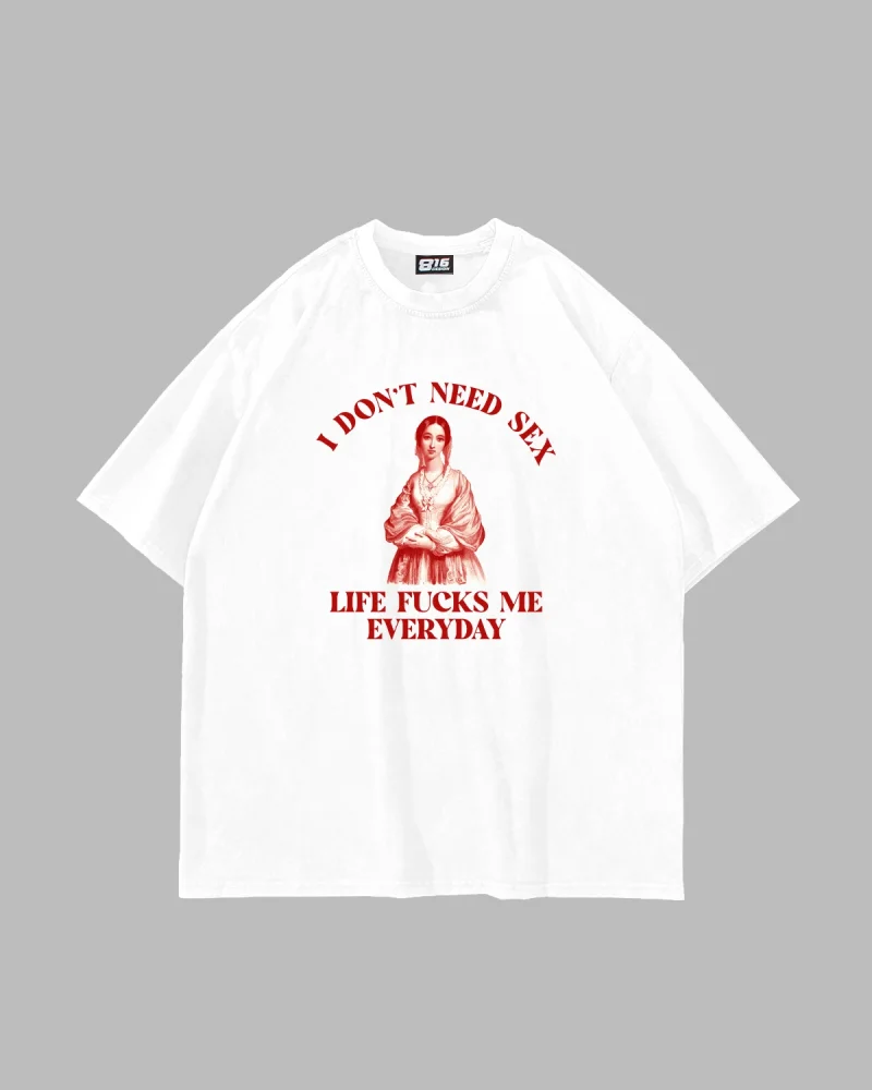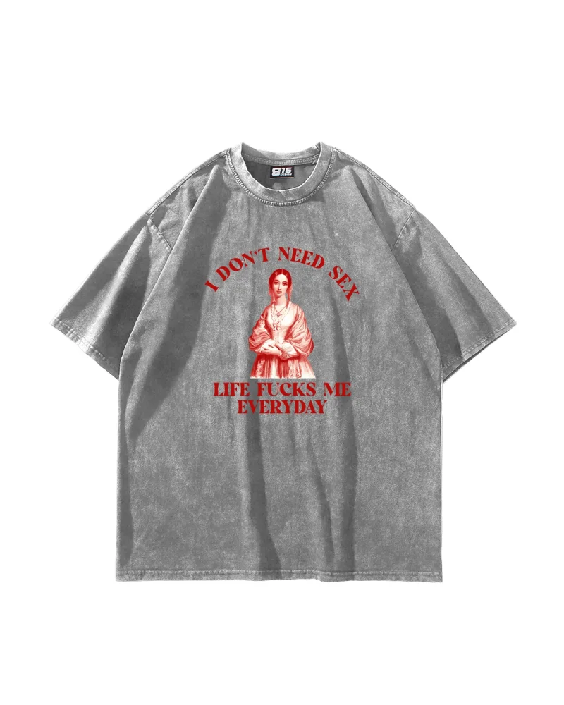 I Don't Need Baskılı Oversize Unisex Yıkamalı Beyaz Tshirt