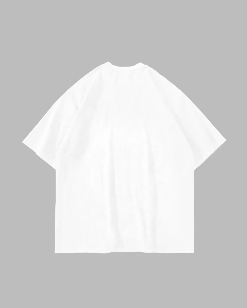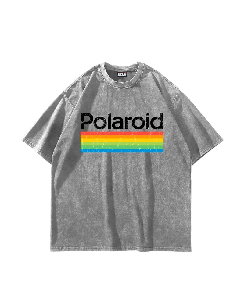 Polaroid Baskılı Oversize Unisex Yıkamalı Beyaz Tshirt