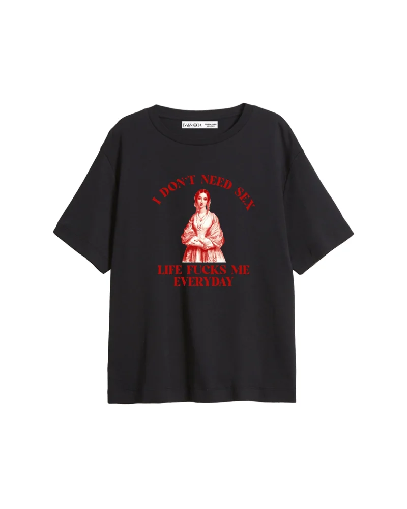 I Don't Need Baskılı Relaxed Fit Siyah Kadın Tshirt