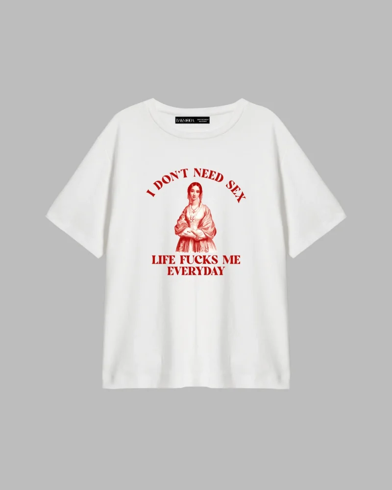 I Don't Need Baskılı Oversize Unisex Beyaz Tshirt