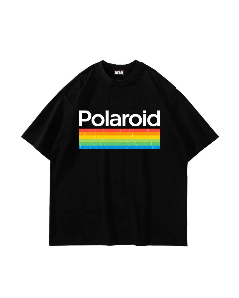Polaroid Baskılı Oversize Unisex Siyah Tshirt