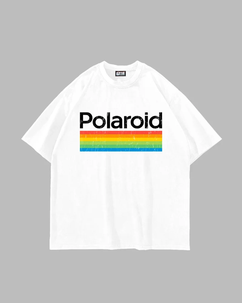 Polaroid Baskılı Oversize Unisex Beyaz Tshirt