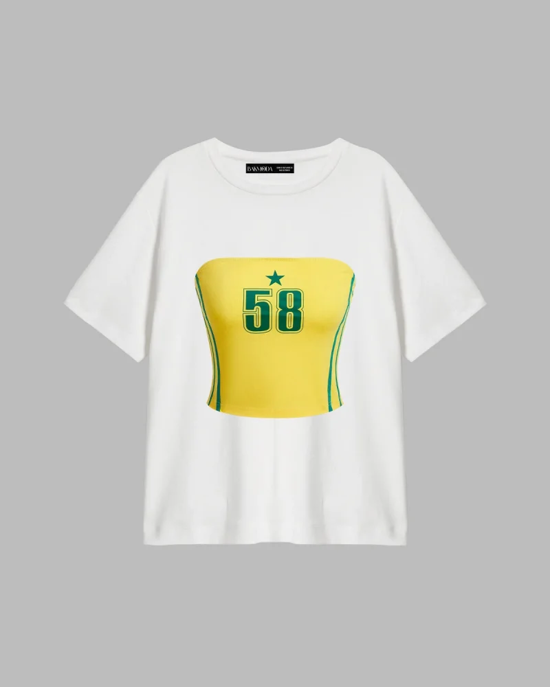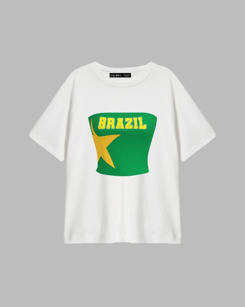 Brasil Star Baskılı Relaxed Fit Beyaz Kadın Tshirt