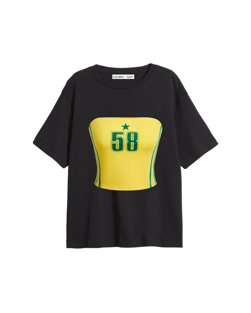 58 Number Baskılı Relaxed Fit Siyah Kadın Tshirt