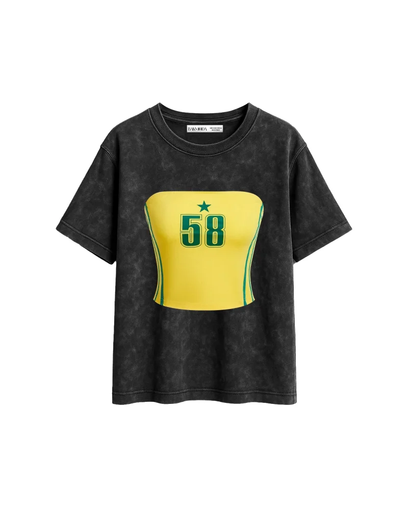 58 Number Baskılı Relaxed Fit Yıkamalı Siyah Kadın Tshirt