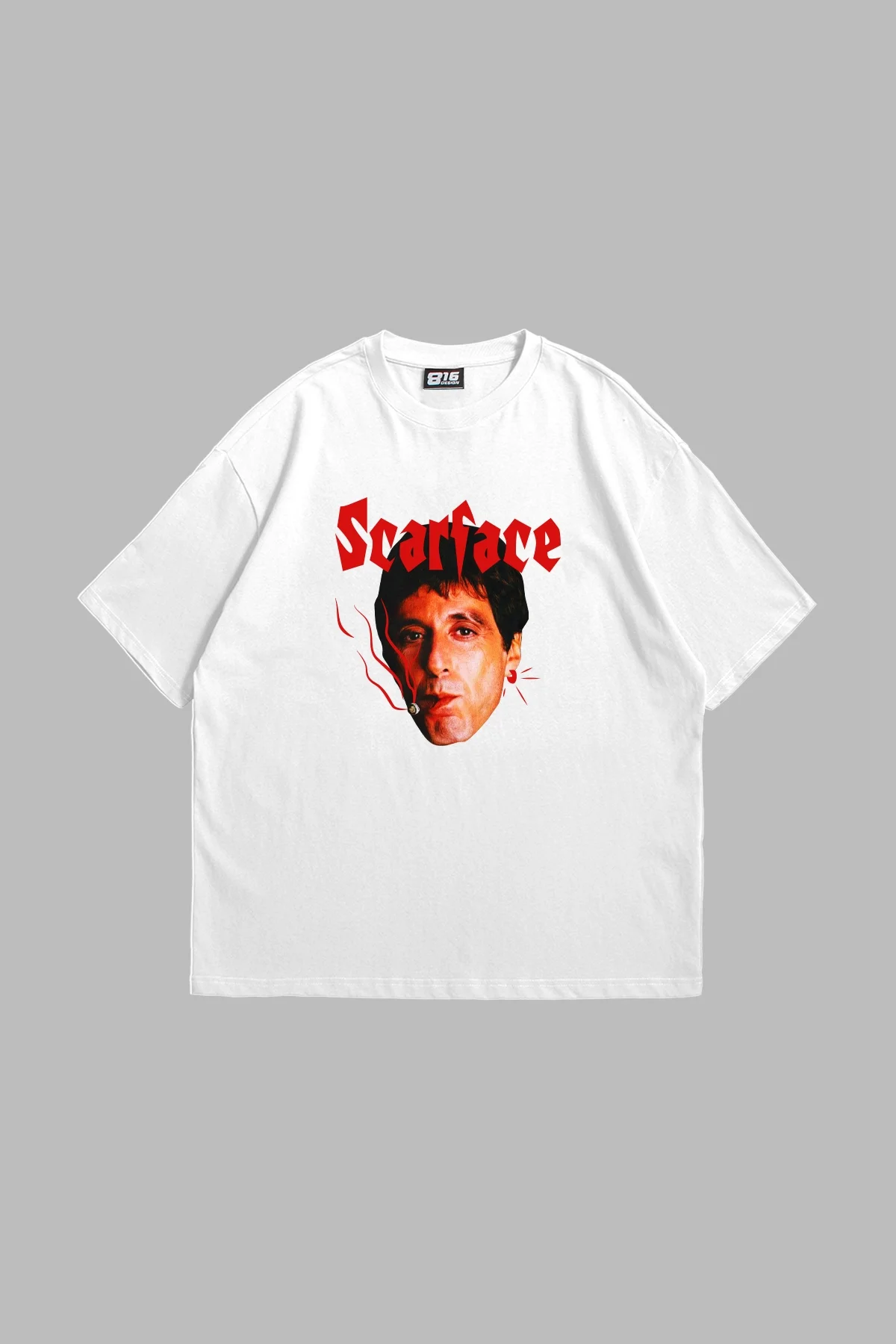 SCARFACE BASKILI OVERSİZE UNİSEX BEYAZ TSHİRT