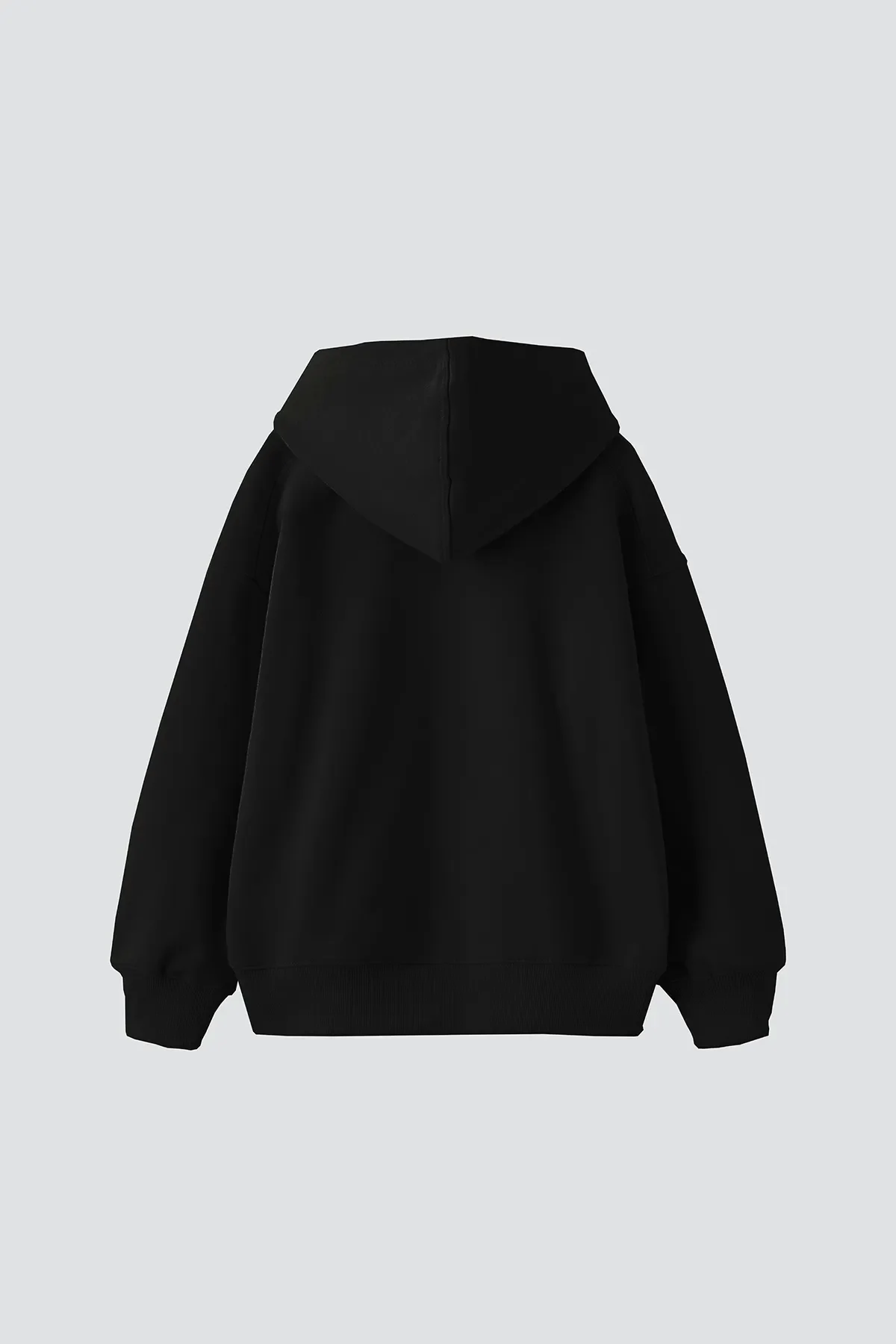 Cepsiz Basic Kapüşonlu Oversize Siyah Hoodie