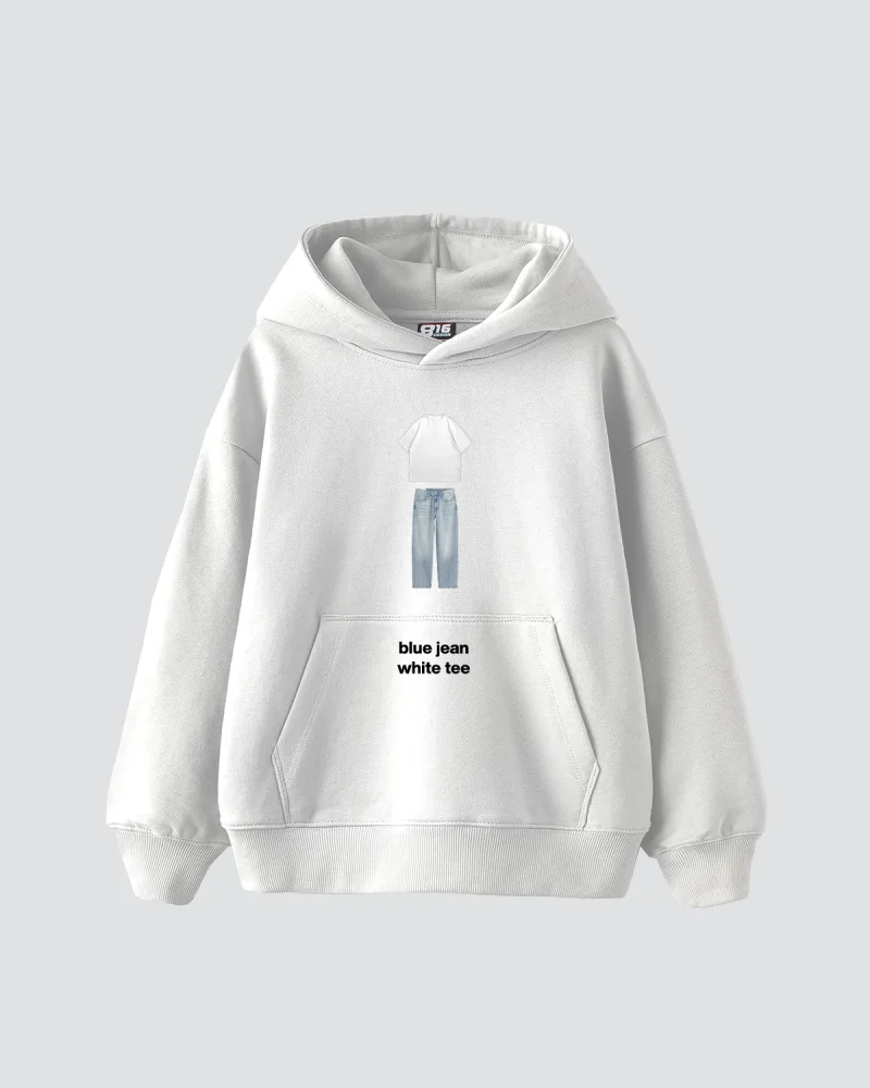 Blue Jean White Tee Baskılı Oversize Unisex Beyaz Hoodie