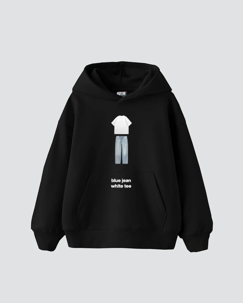 Blue Jean White Tee Baskılı Oversize Unisex Siyah Hoodie