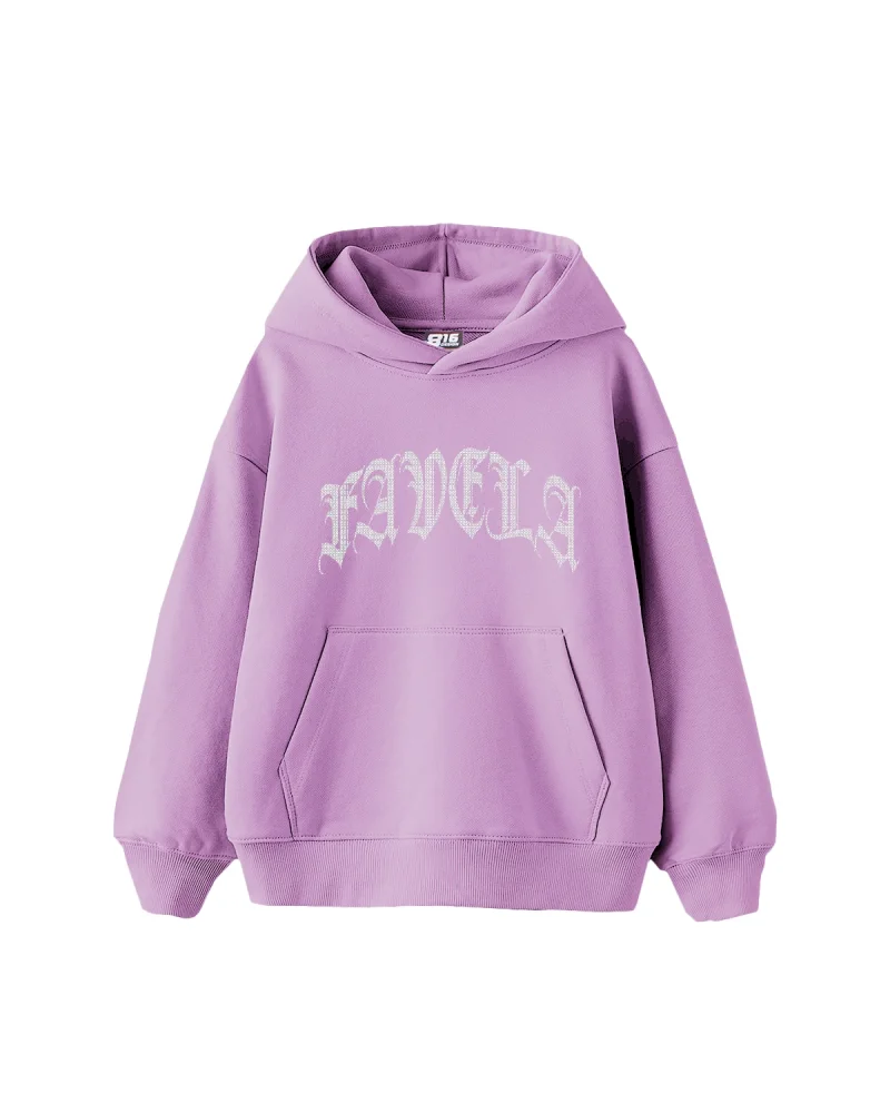 Favela Taş Baskılı Oversize Unisex Mor Hoodie