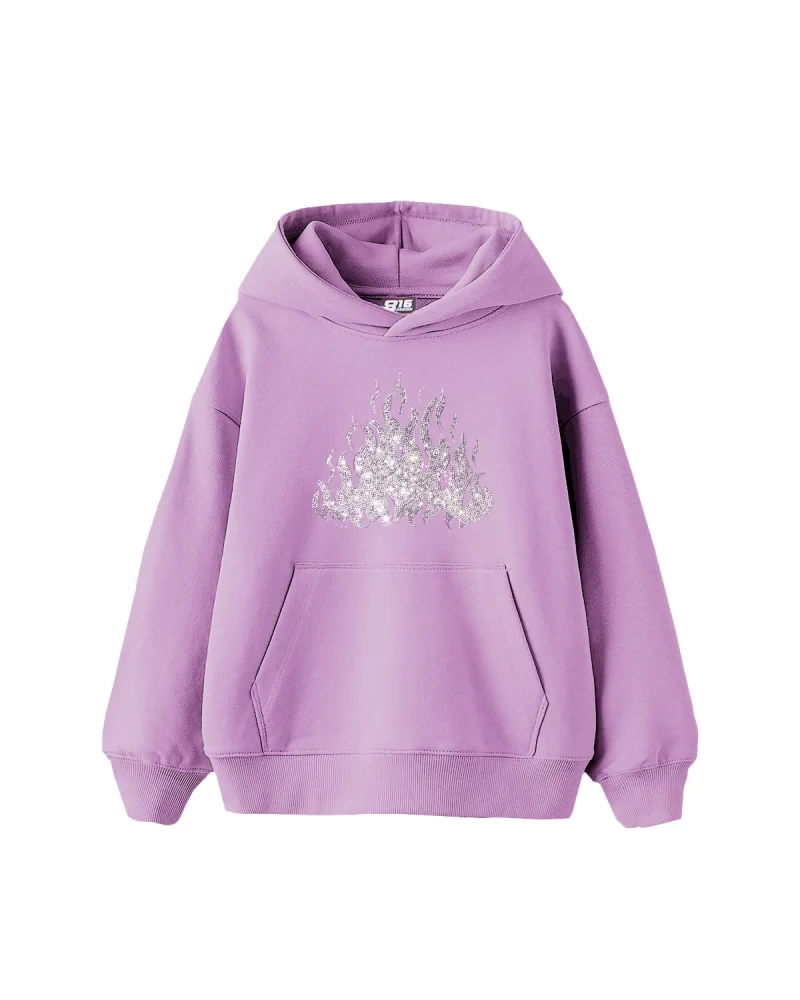 Flame Taş Baskılı Oversize Unisex Mor Hoodie