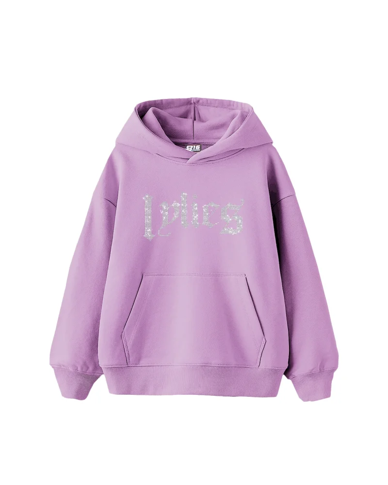 Lylies Taş Baskılı Oversize Unisex Mor Hoodie