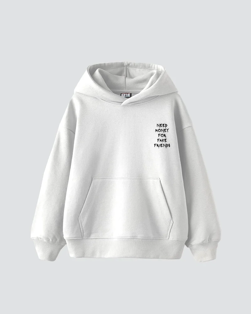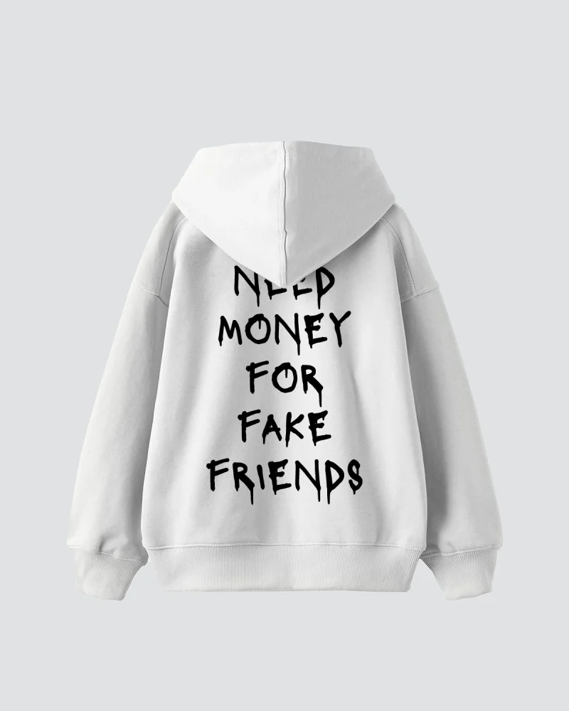 Need Money for Fake Friends Baskılı Oversize Unisex Beyaz Hoodie