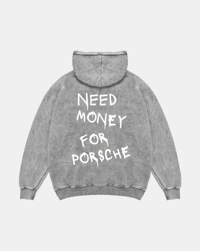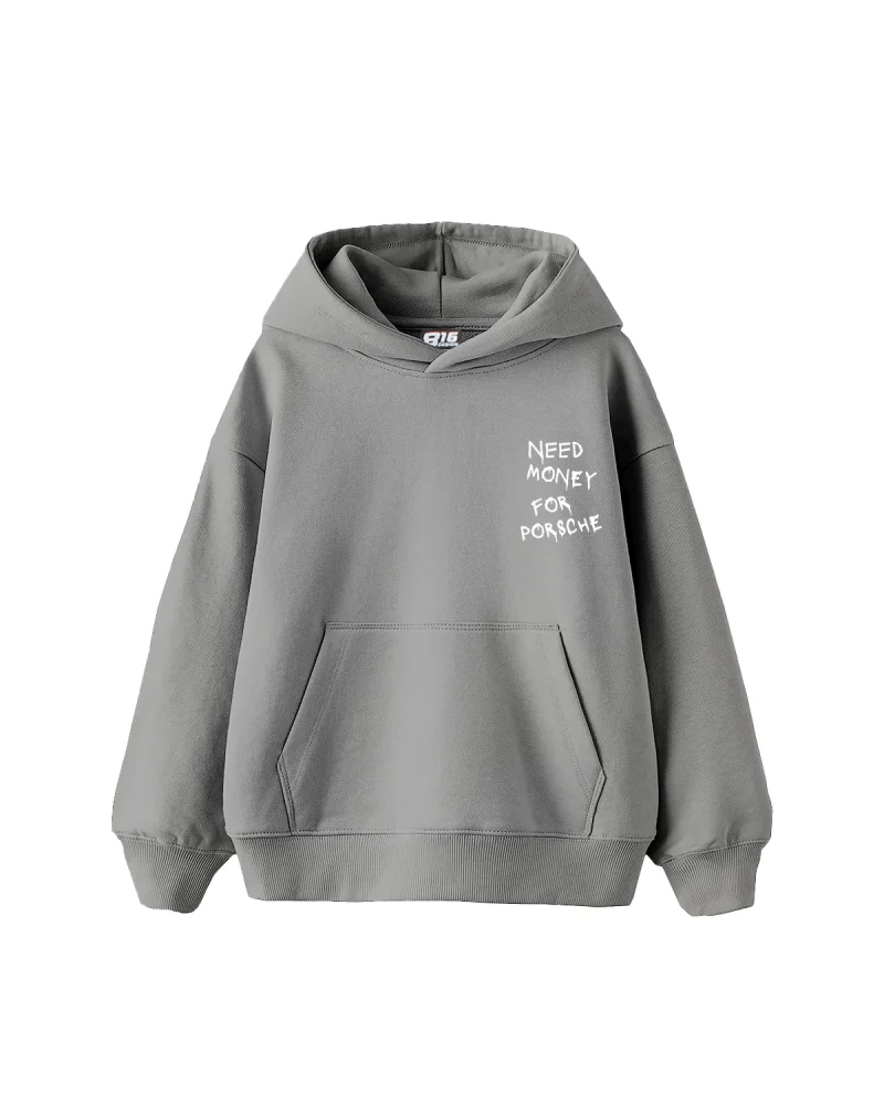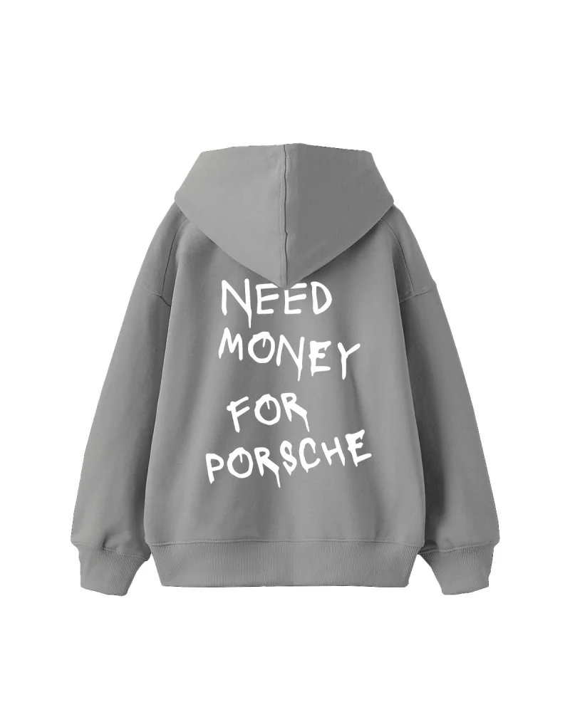 Need Money for Porsche Baskılı Oversize Unisex Gri Hoodie