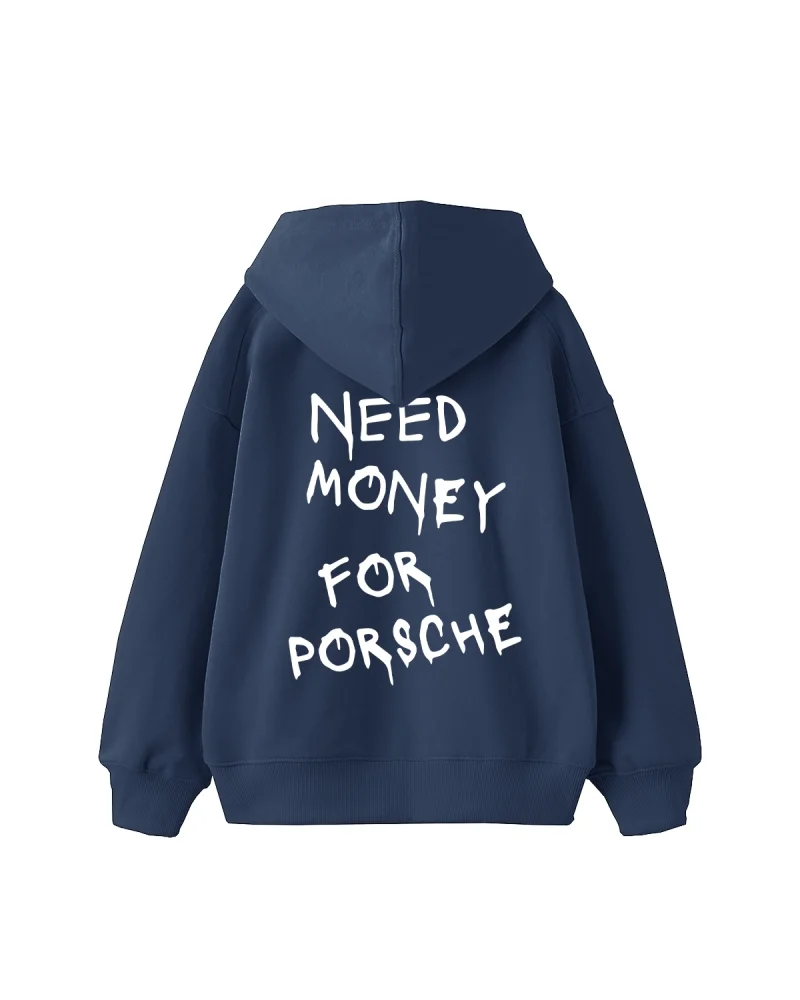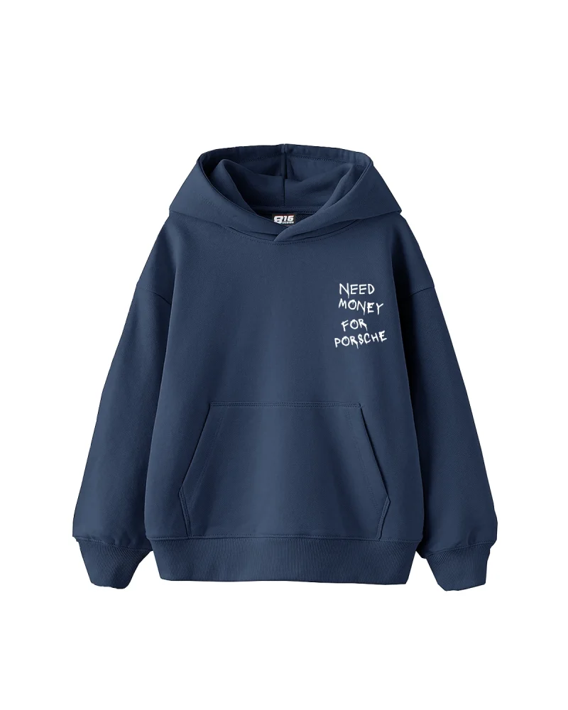 Need Money for Porsche Baskılı Oversize Unisex İndigo Hoodie