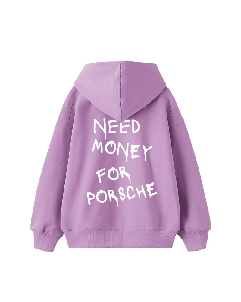 Need Money for Porsche Baskılı Oversize Unisex Mor Hoodie