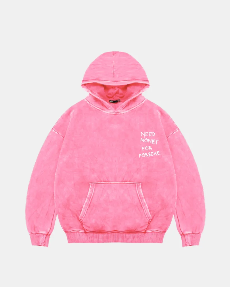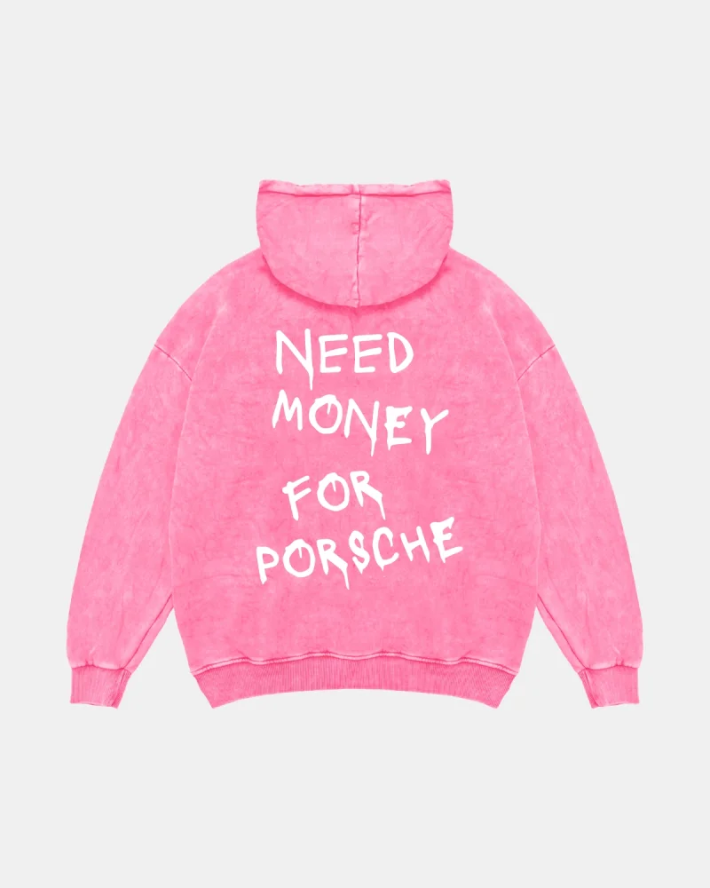 Need Money for Porsche Baskılı Oversize Unisex Yıkamalı Pembe Hoodie