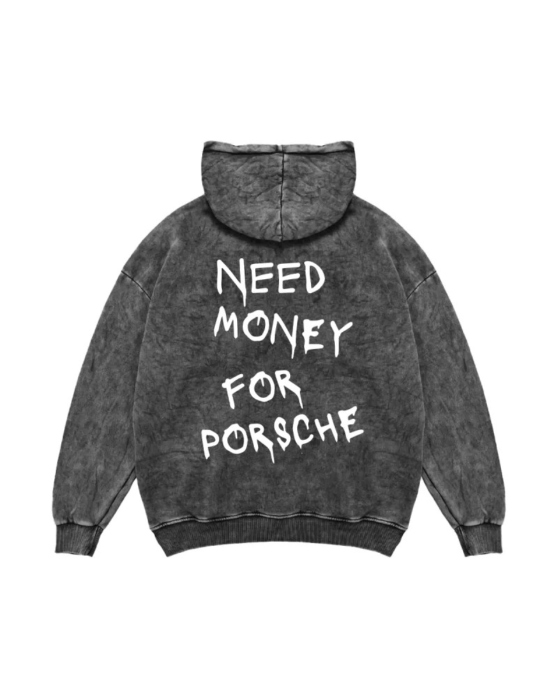 Need Money for Porsche Baskılı Oversize Unisex Yıkamalı Siyah Hoodie