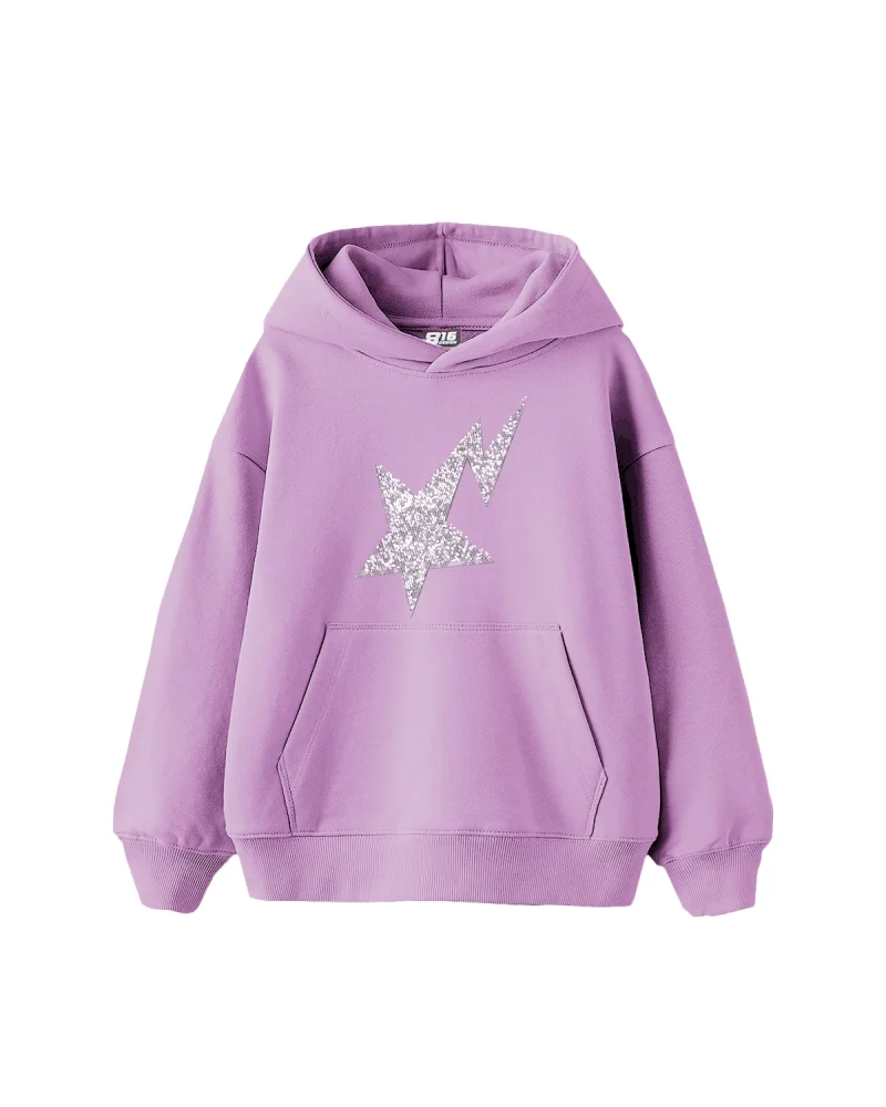 Shining Star Taş Baskılı Oversize Unisex Premium Mor Hoodie