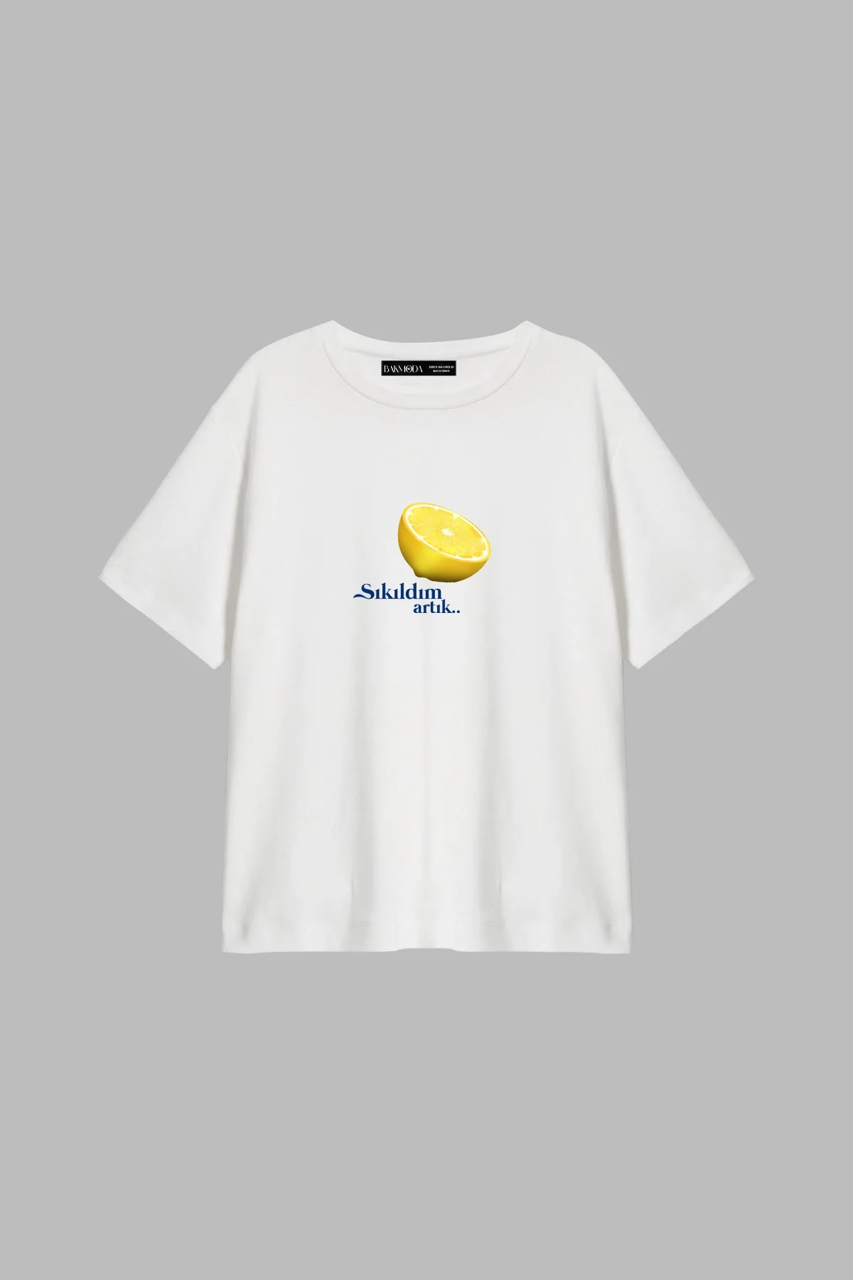 SIKILDIM ARTIK BASKILI RELAXED FİT BEYAZ KADIN TSHİRT