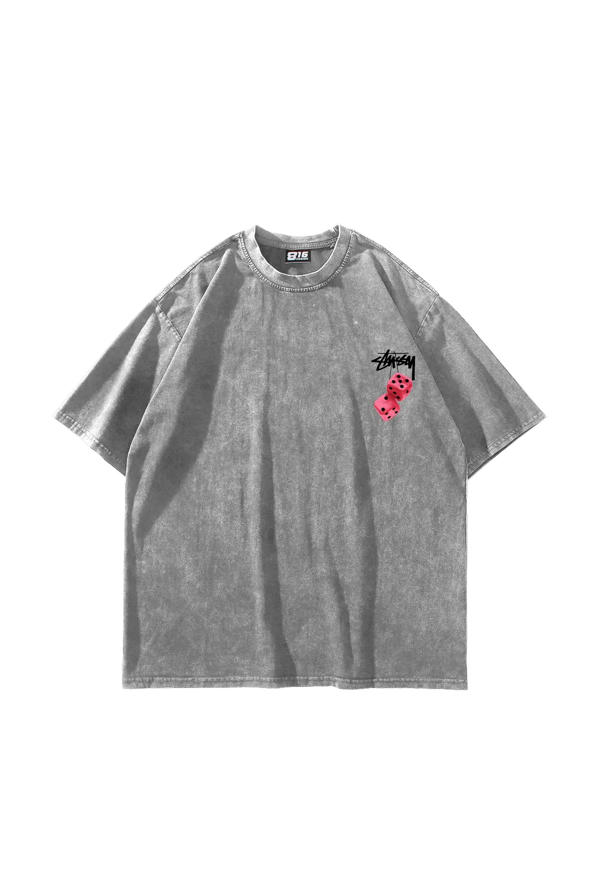 STS. DİCE SIRT BASKILI OVERSİZE UNİSEX YIKAMALI BEYAZ TSHİRT