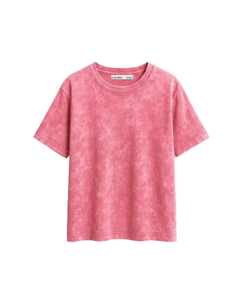 Basic Relaxed Fit Yıkamalı Pembe Kadın Tshirt