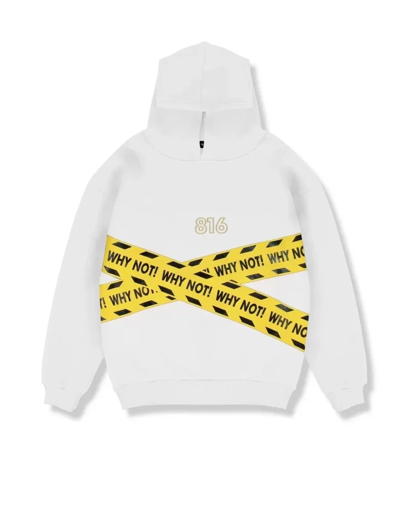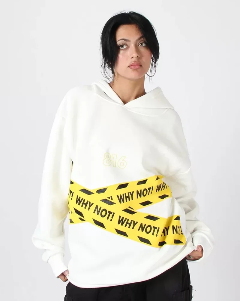 WHY NOT Baskılı Beyaz Oversize Unisex Kapüşonlu Sweatshirt