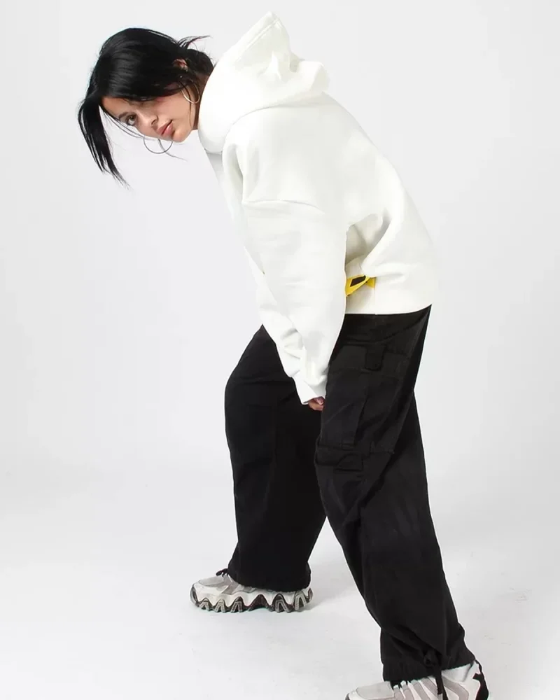 Eternal Text Baskılı Oversize Unisex Beyaz Hoodie