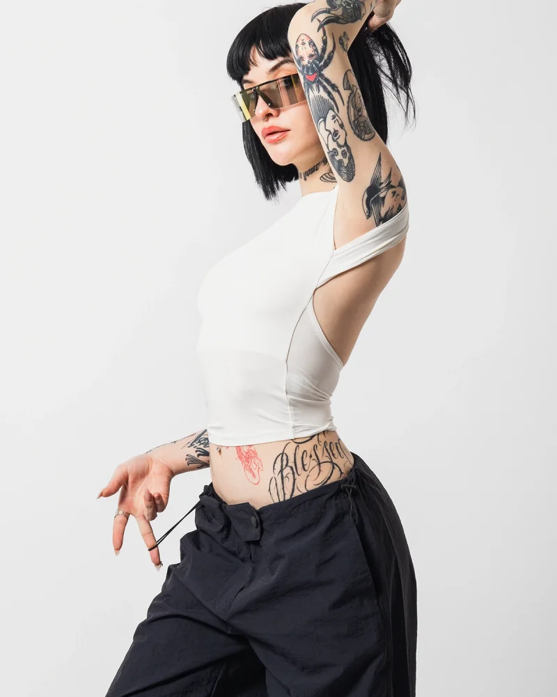 Sırt Dekolteli Sıfır Kol Basic Beyaz Body
