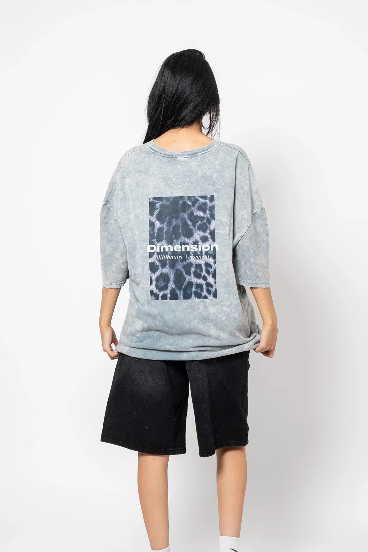 "V2" DİMENSİON BASKILI HAYVAN DESENLİ 24/1 OVERSİZE UNİSEX YIKAMALI BEYAZ TSHİRT