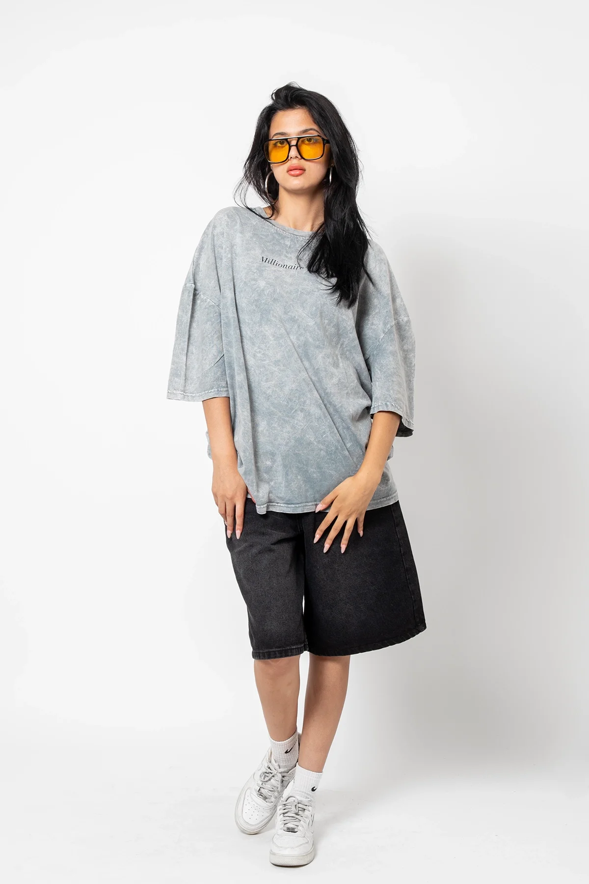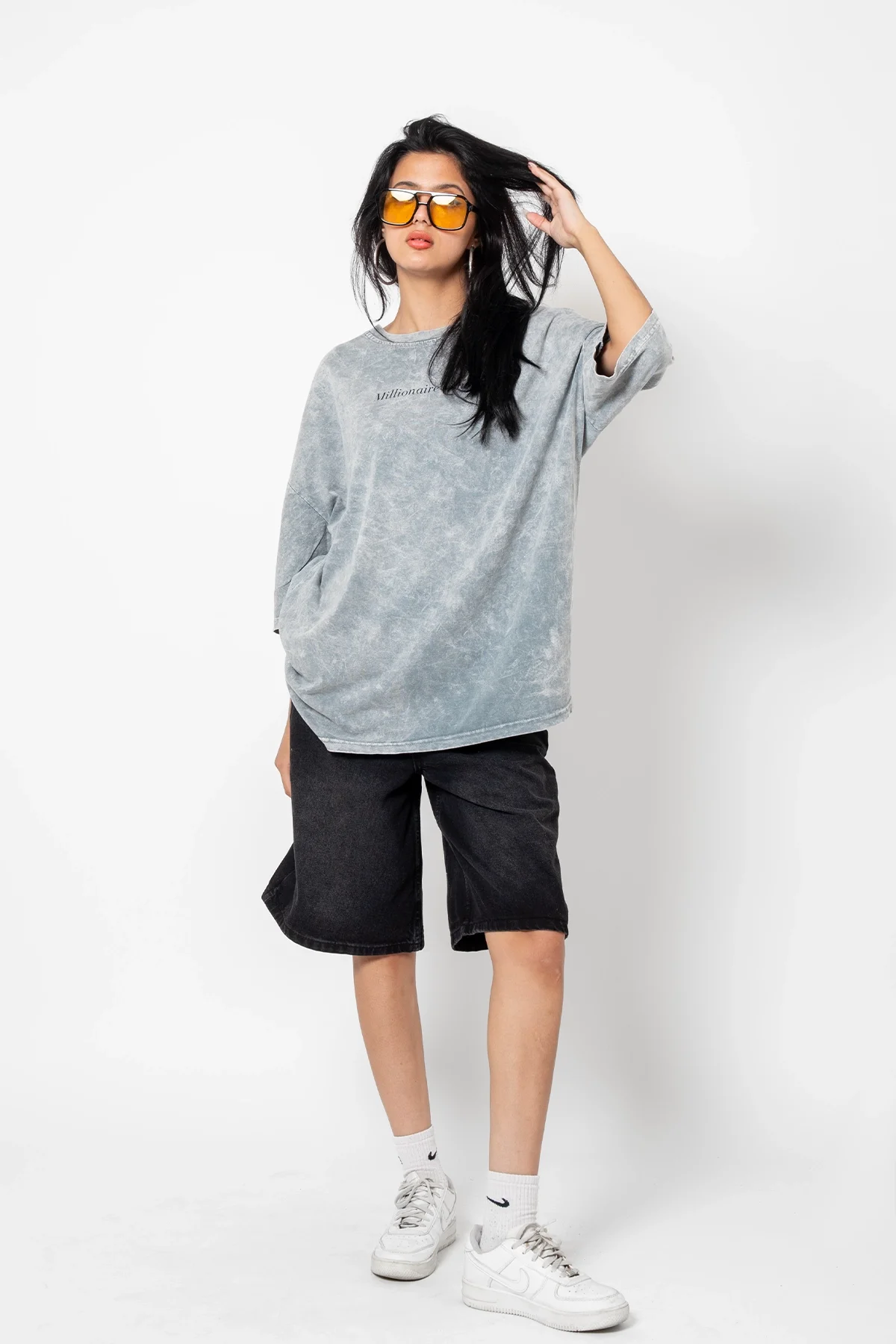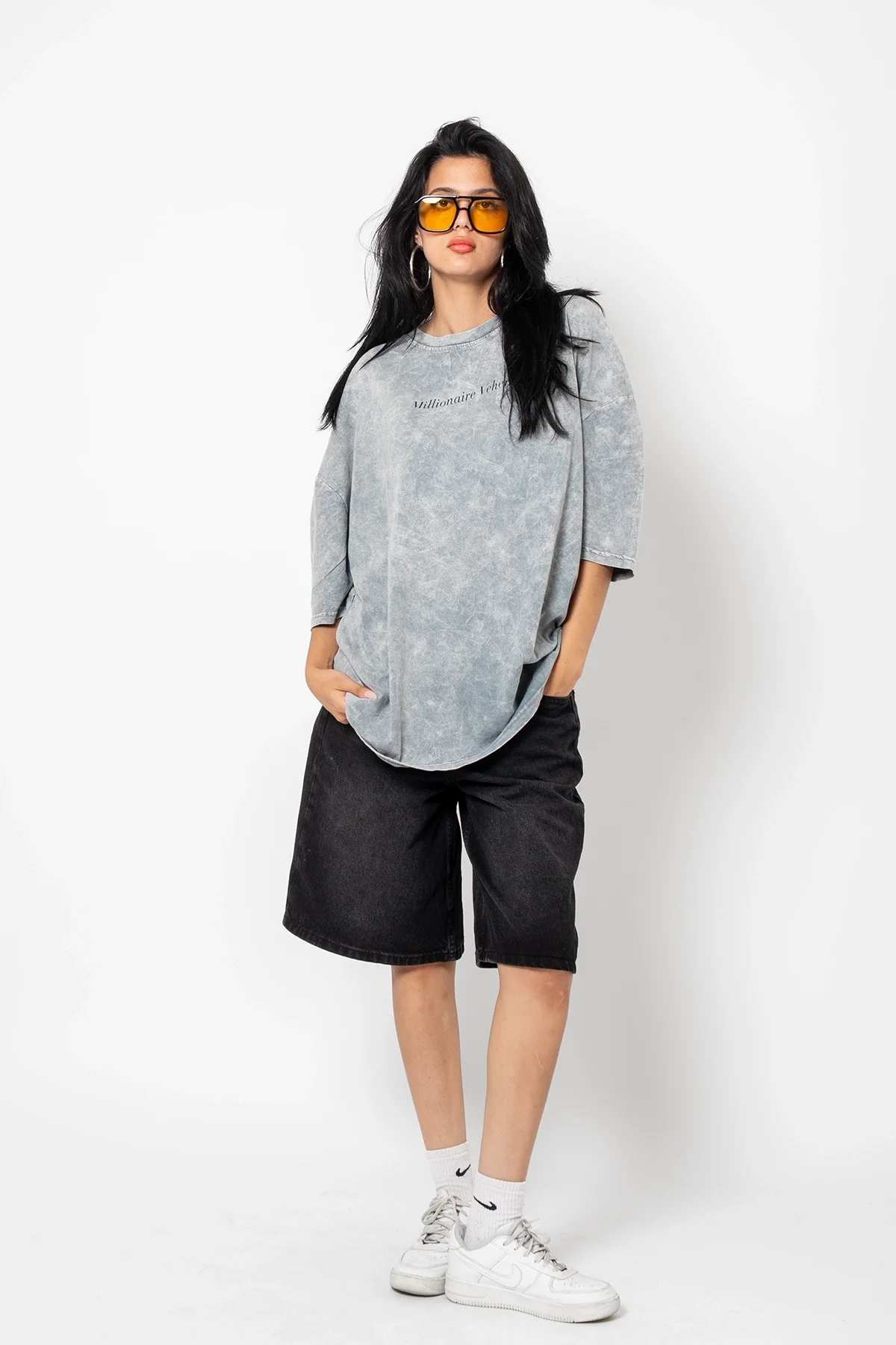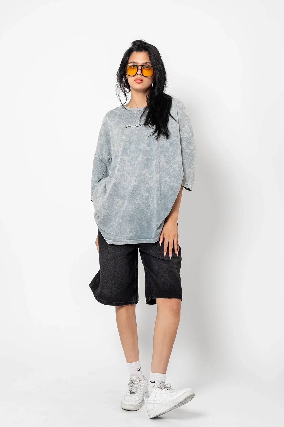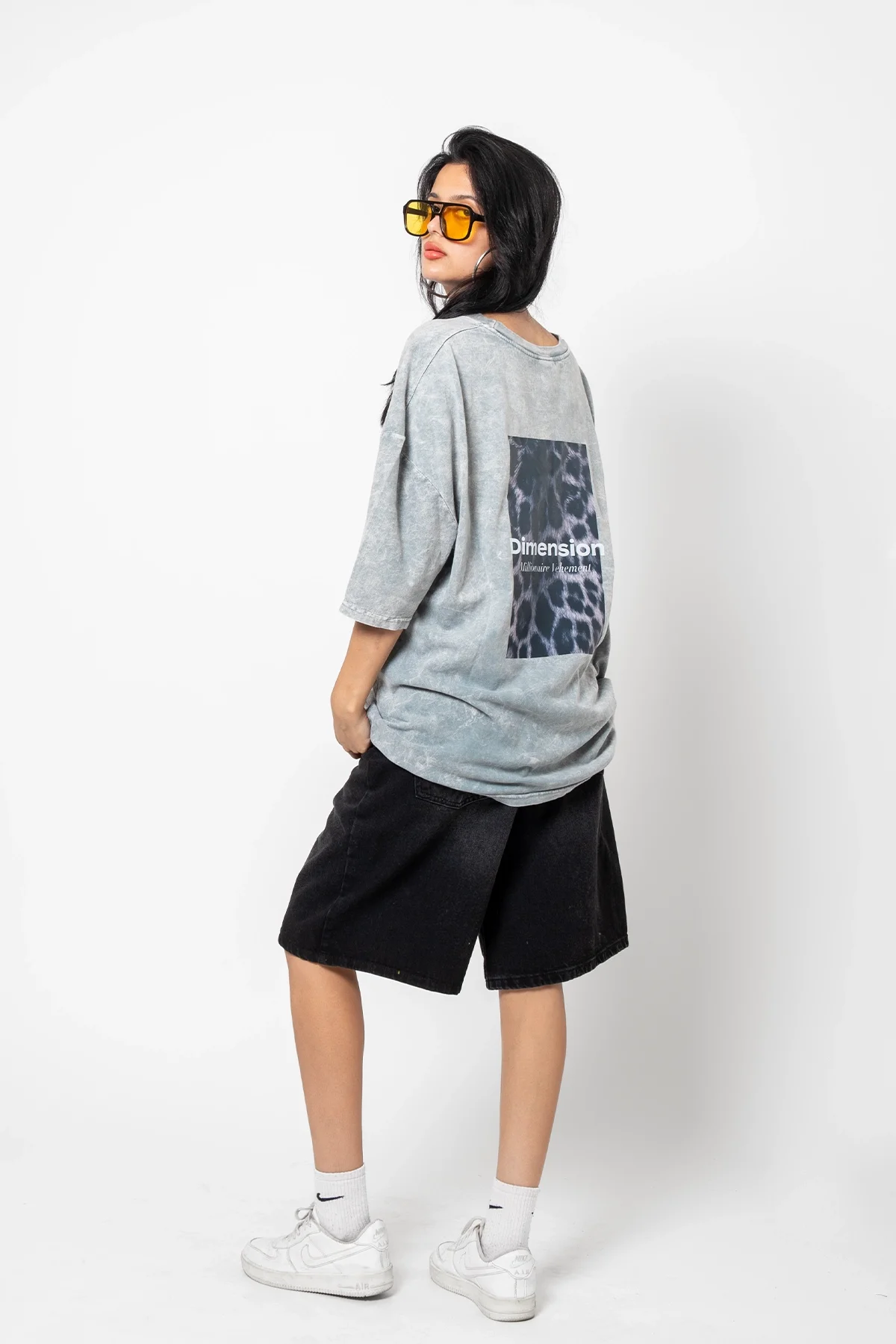 Aura Baskılı Oversize Unisex Yıkamalı Siyah Tshirt