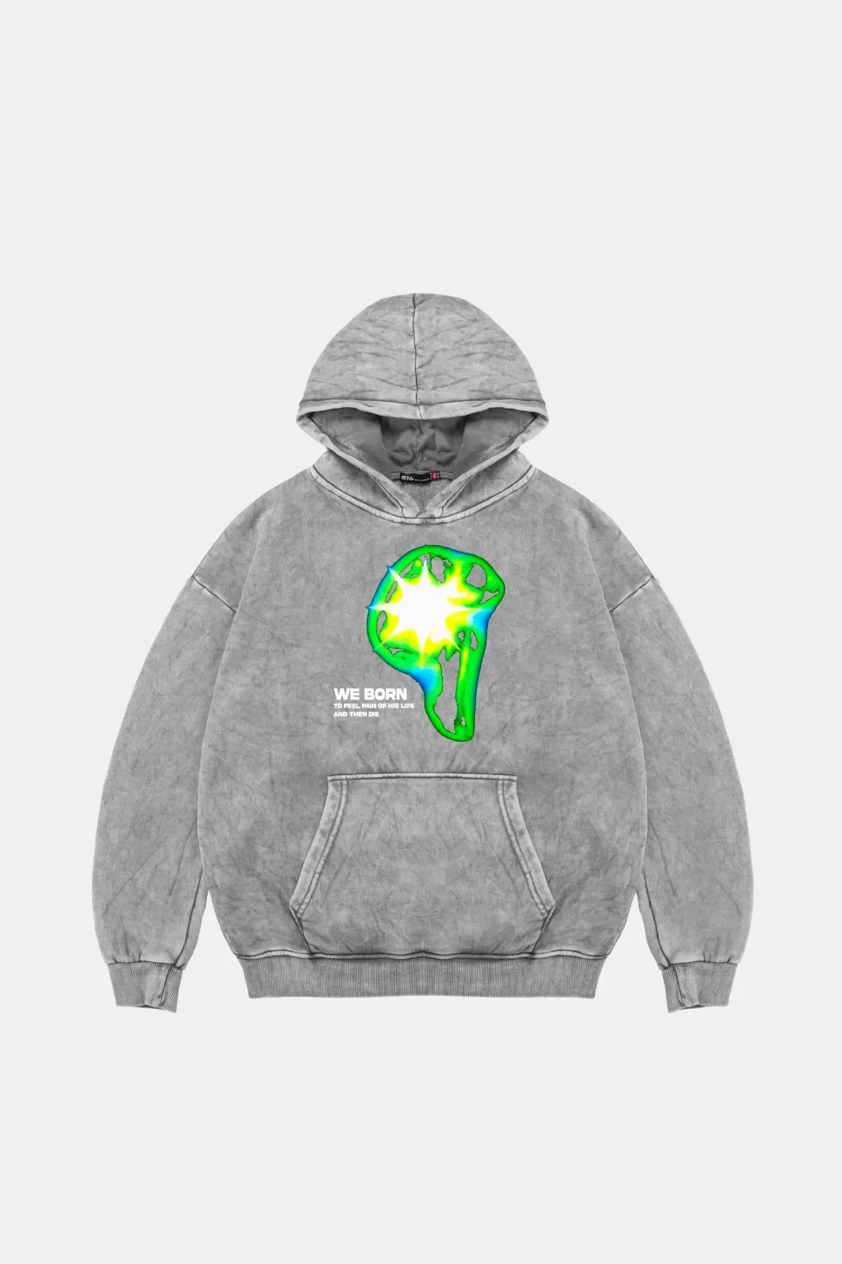 WE BORN BASKILI OVERSİZE UNİSEX YIKAMALI BEYAZ HOODİE