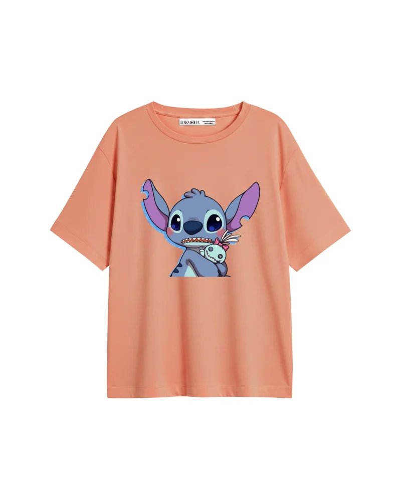 Stitch Baby Baskılı Relaxed Fit Yavruağzı Kadın Tshirt