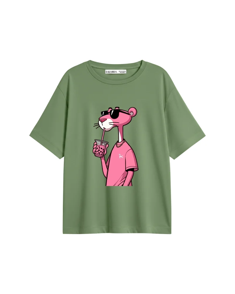 Pink Panther V2 Baskılı Relaxed Fit Yavruağzı Kadın Tshirt
