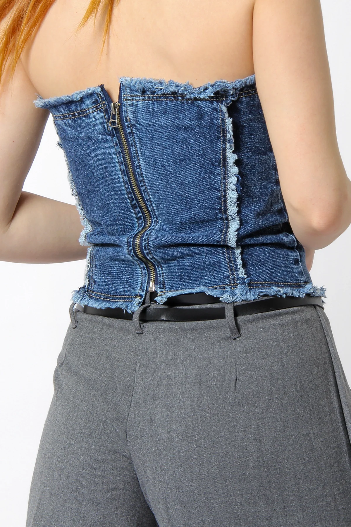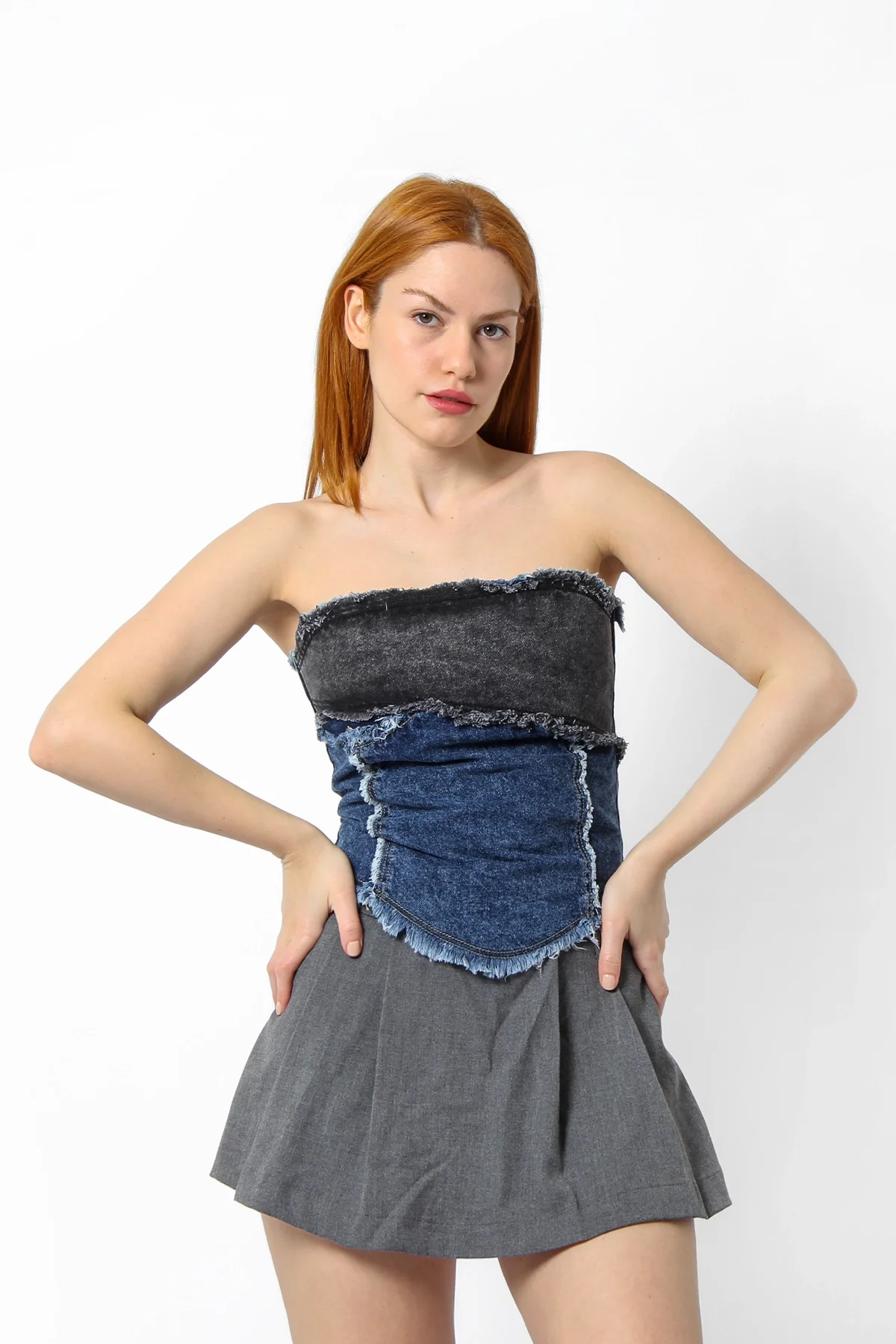 Uzun Kollu Göğüs Dekolteli Triko Mavi Triko Kazak
