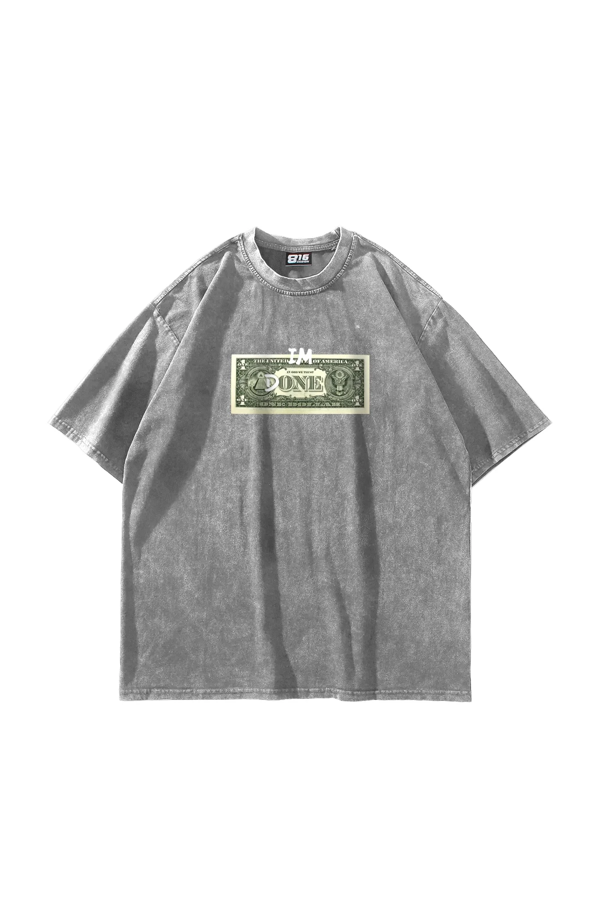 DOLLAR BASKILI OVERSİZE UNİSEX YIKAMALI BEYAZ TSHİRT