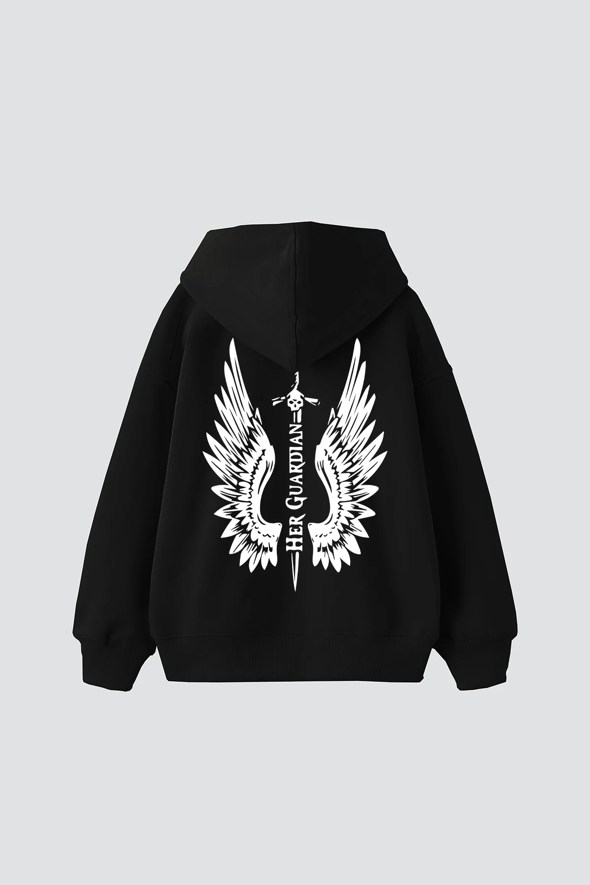 Sokak stiline ışıltılı bir dokunuş: Her Guardıan Baskılı Siyah Hoodie, oversize kesimi ve göz alıcı detaylarıyla tarzını cesurca yansıtmak isteyenler için tasarlandı.