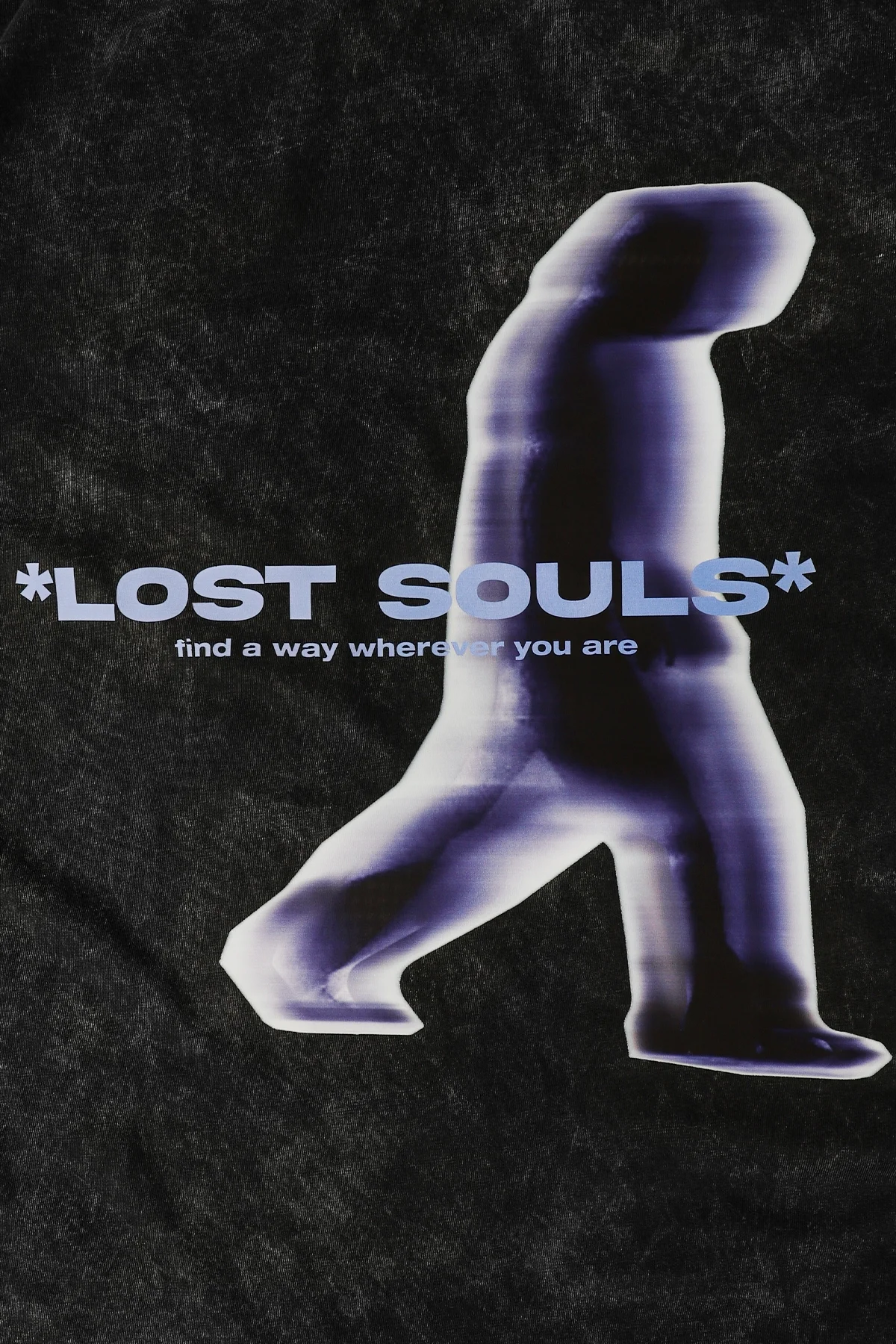 LOST SOULS BASKILI YIKAMALI SİYAH UNİSEX OVERSİZE TSHİRT