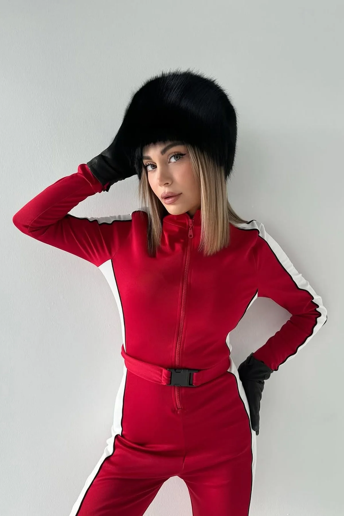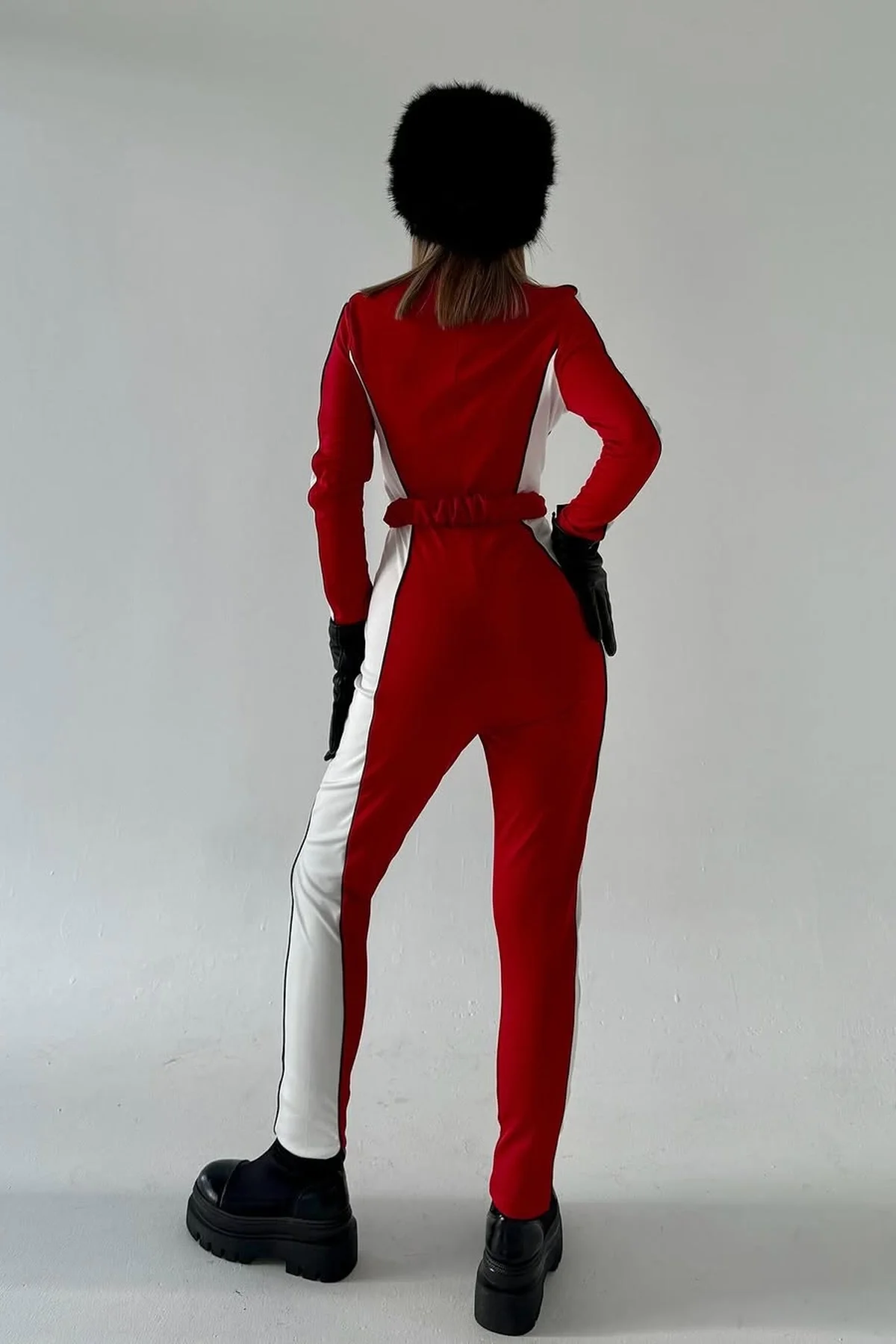 PARÇALI KEMER DETAYLI PREMİUM KIRMIZI TULUM