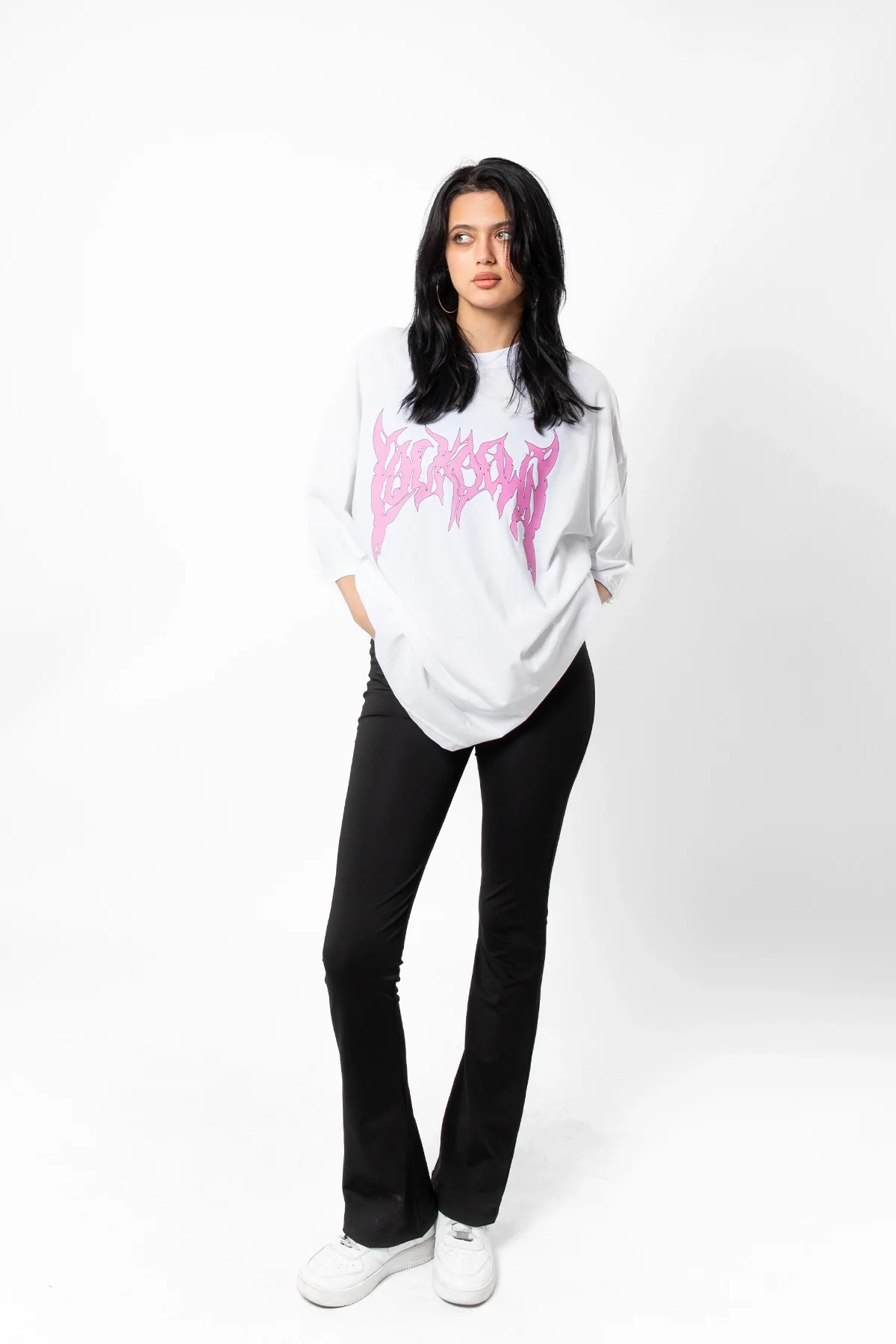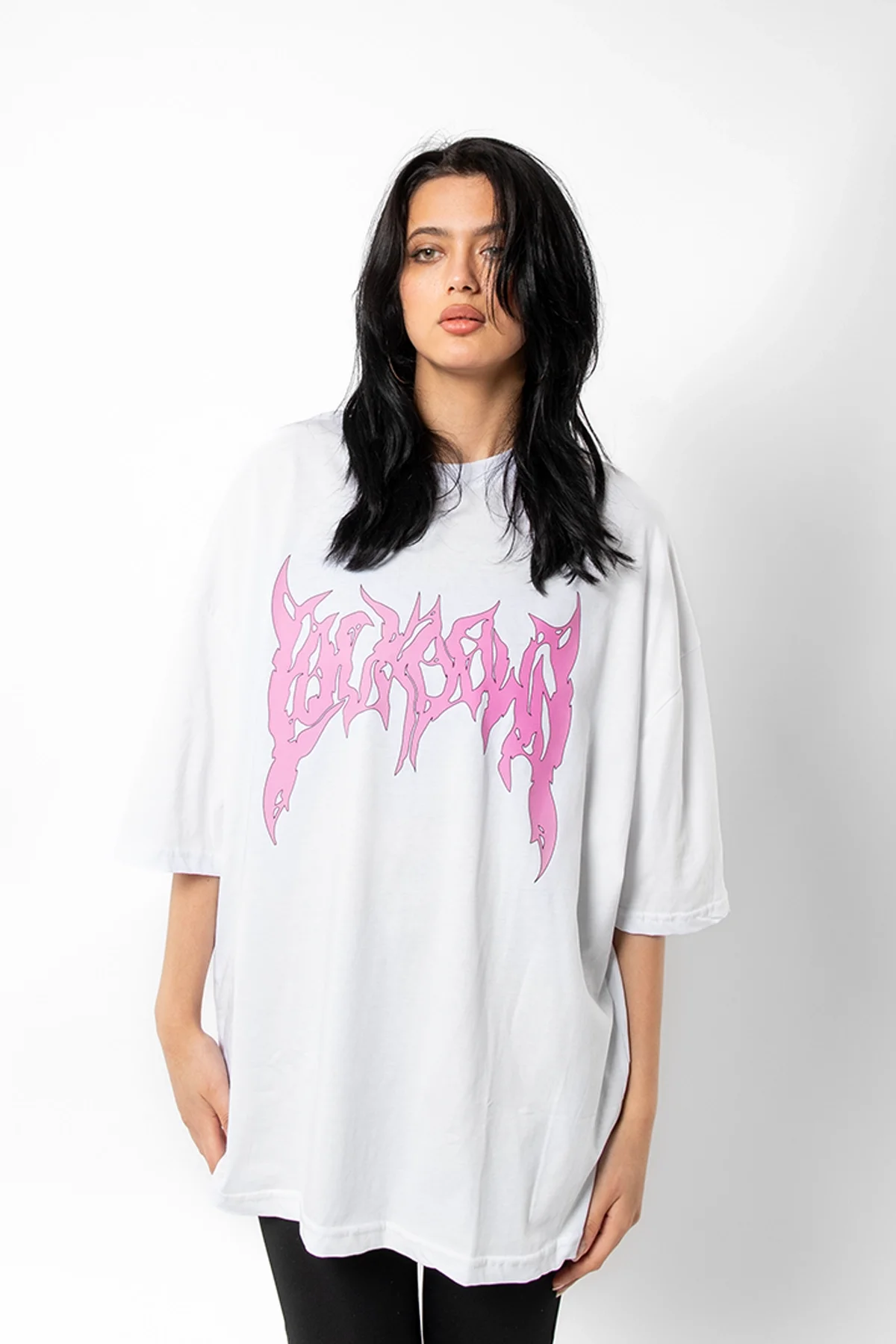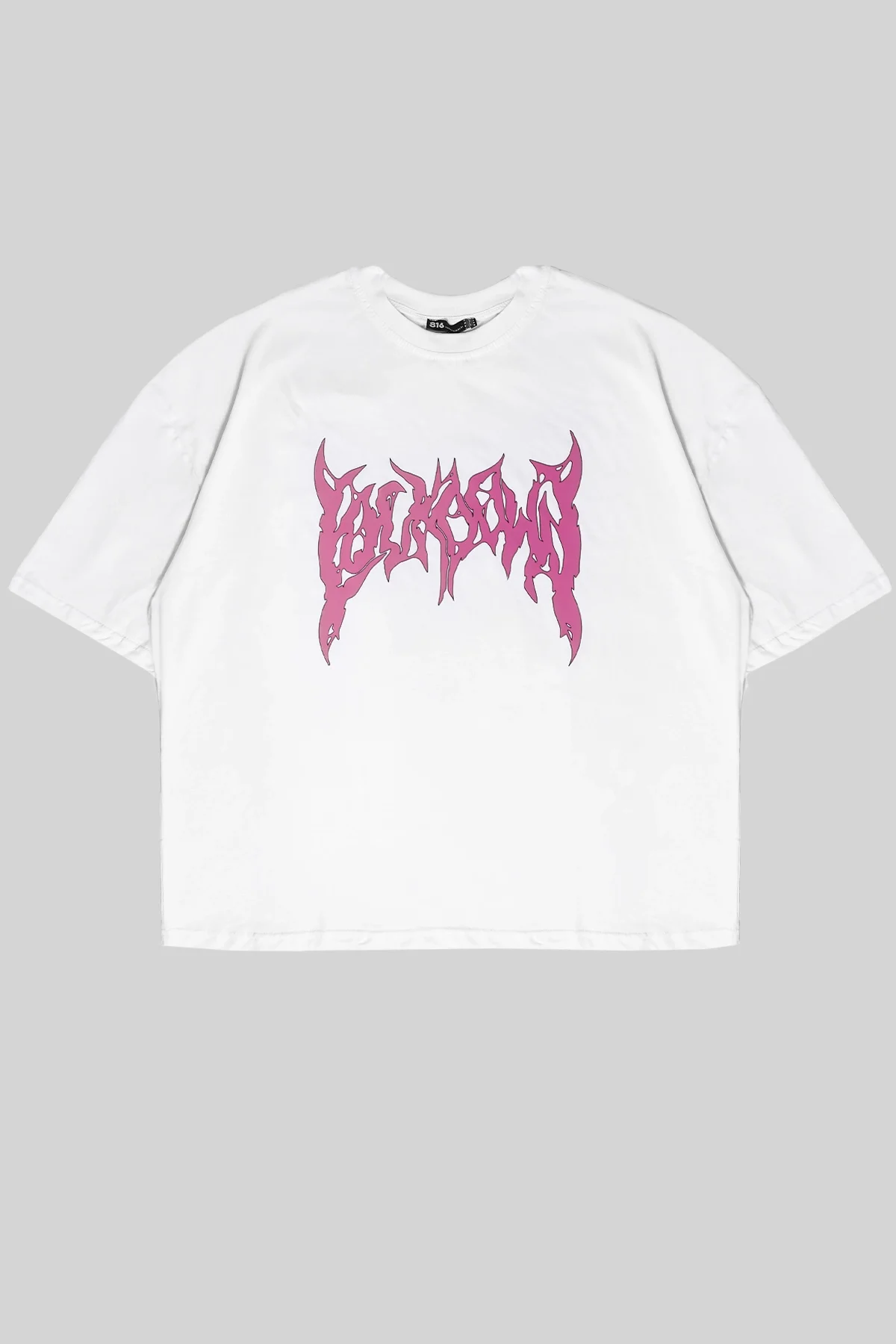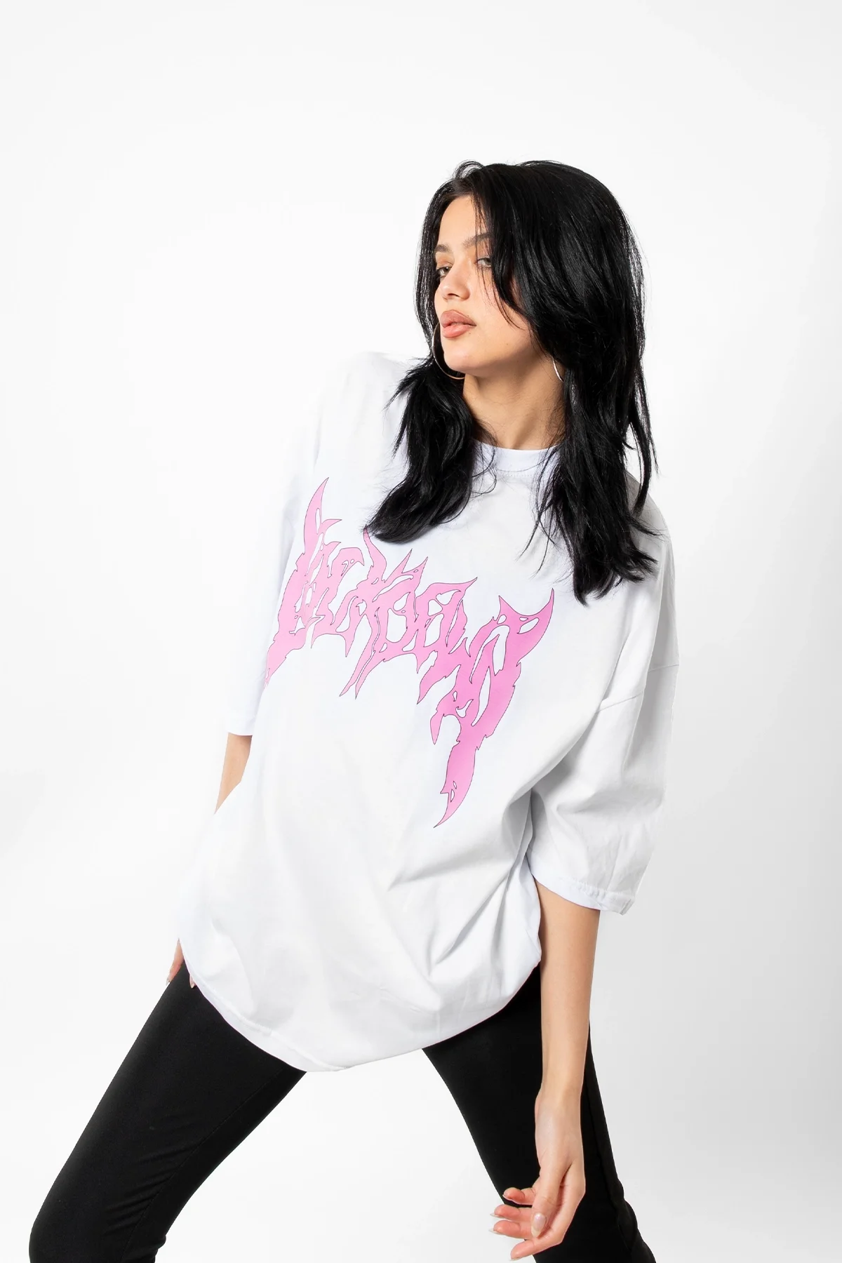 PİNK STREET FONT BASKILI BEYAZ UNİSEX OVERSİZE TSHİRT